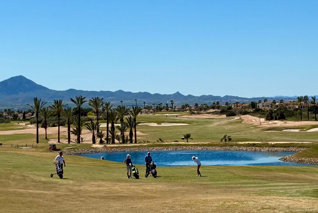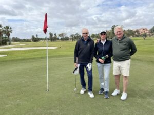 Äntligen har vårvärmen kommit på riktigt och vi njuter av solen här på Hacienda del Alamo i Spanien. De första dagarna var det fortfarande lite kyligt på morgnarna och vinden var rejält utmanande för dem som spelade på söndagen. Trots det var det fina inspel av våra Eastongäster på 18:e, puttar som gick i hål och idel glada miner!