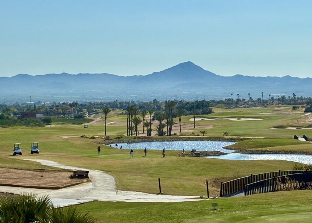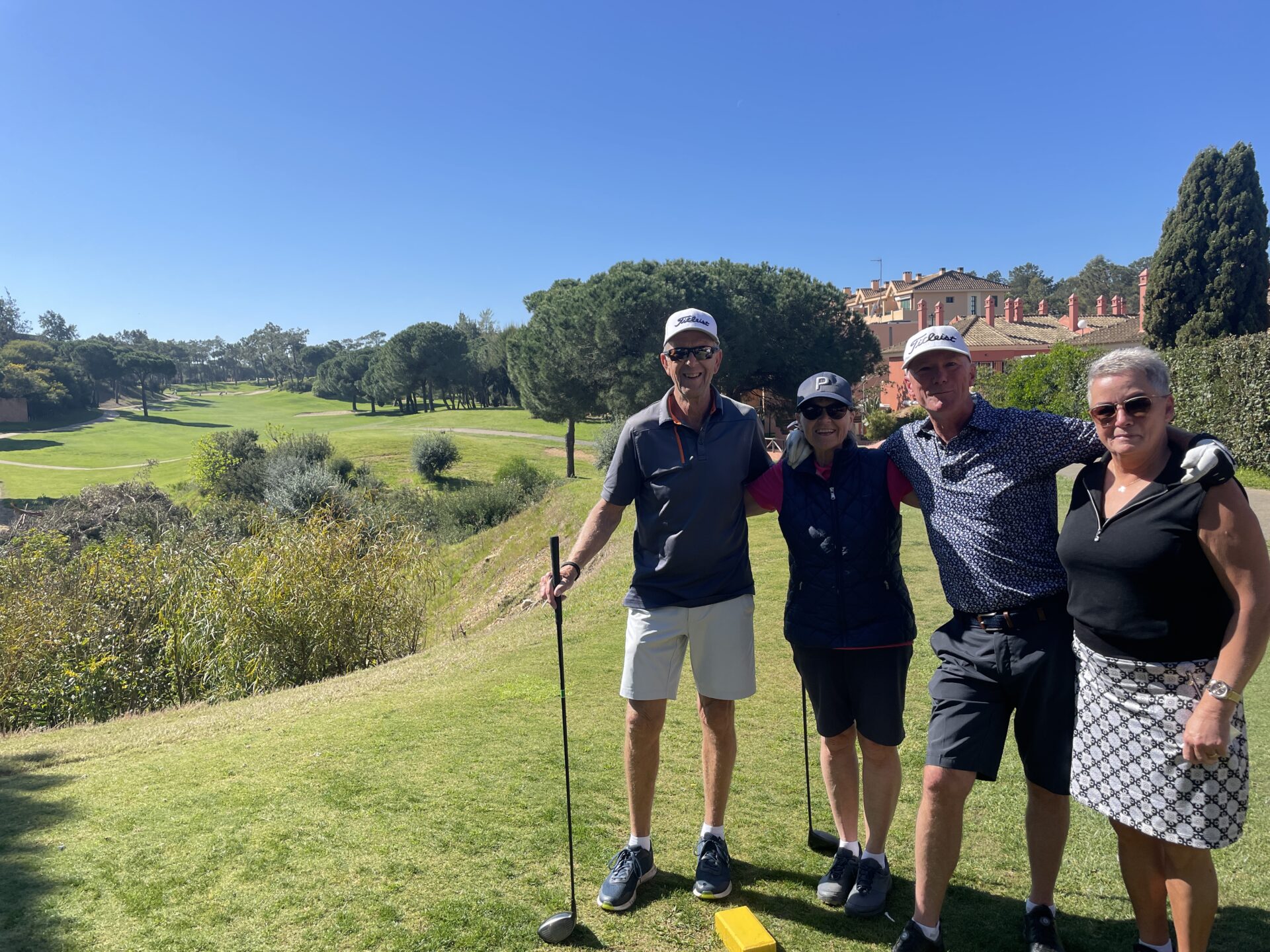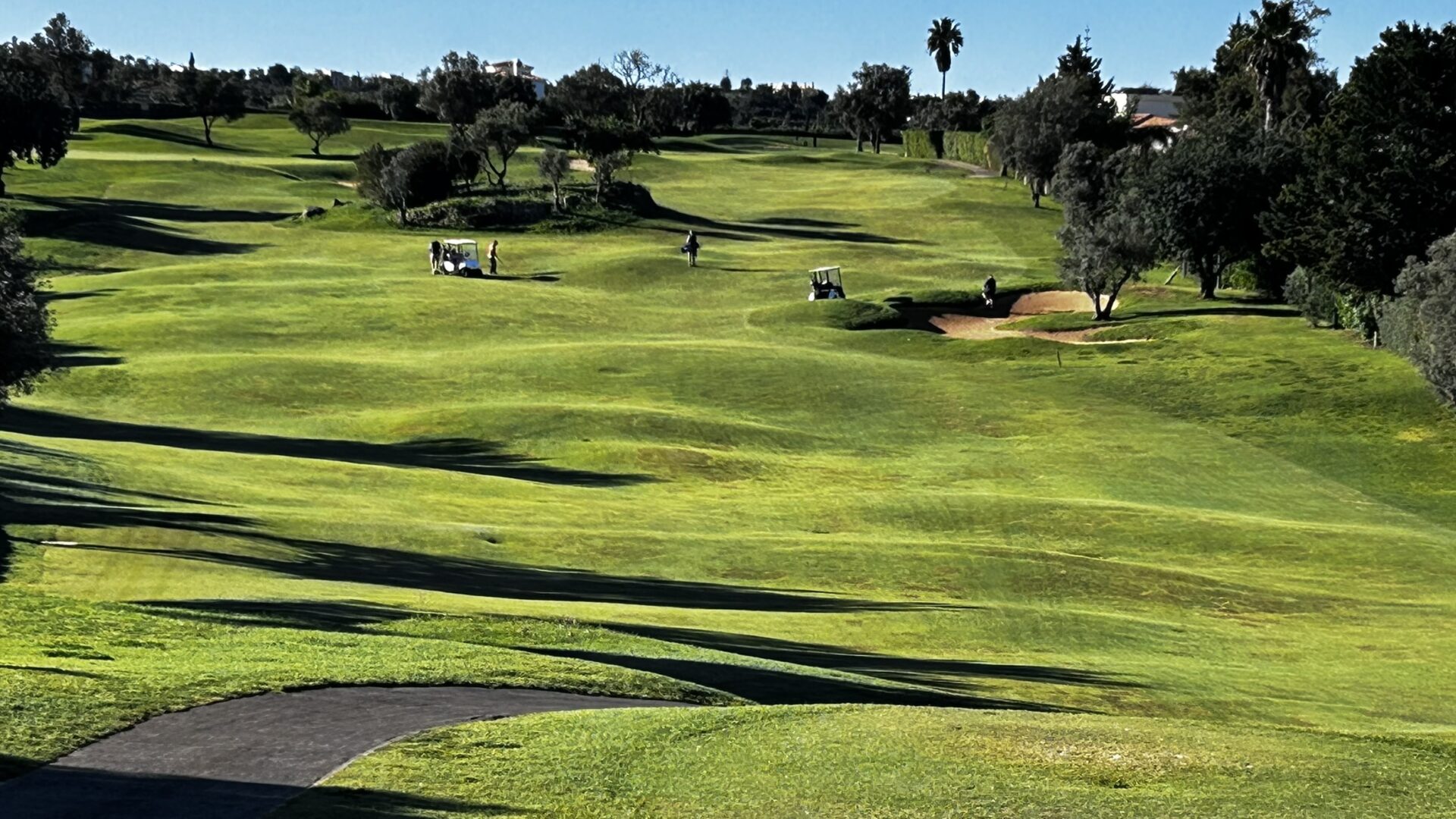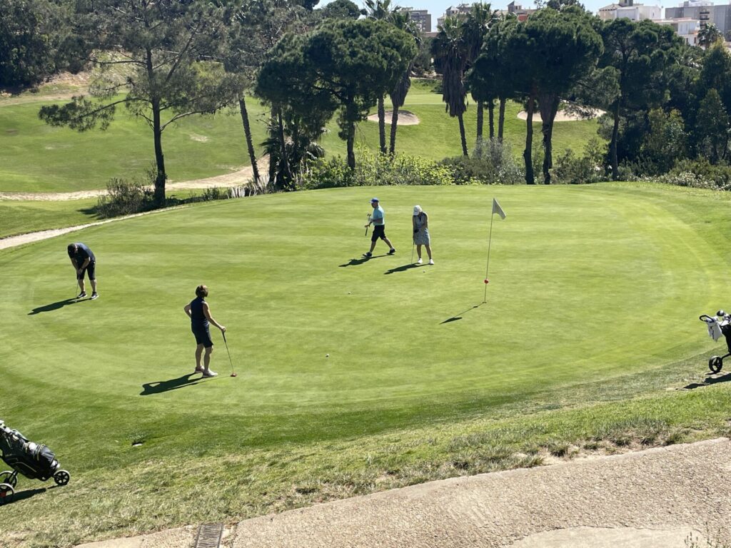 Golfveckan på Hacienda del Álamo avslutades med tävlingen Easton Variant i strålande sommarväder. Från terassen i klubbhuset syns tre Eastongäng på väg in på 18:e hålet, en lång par 5:a.