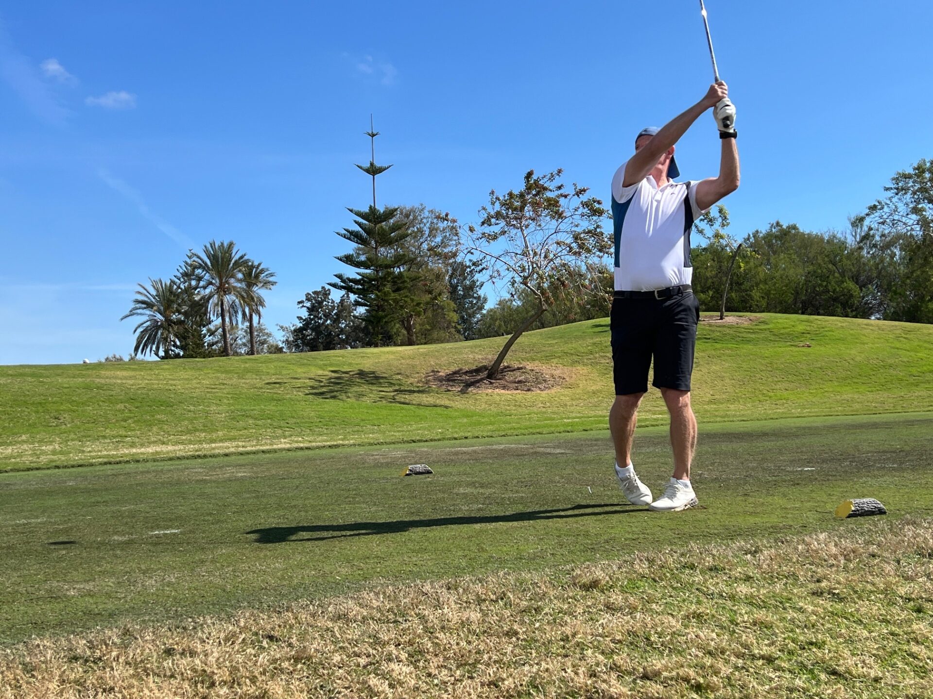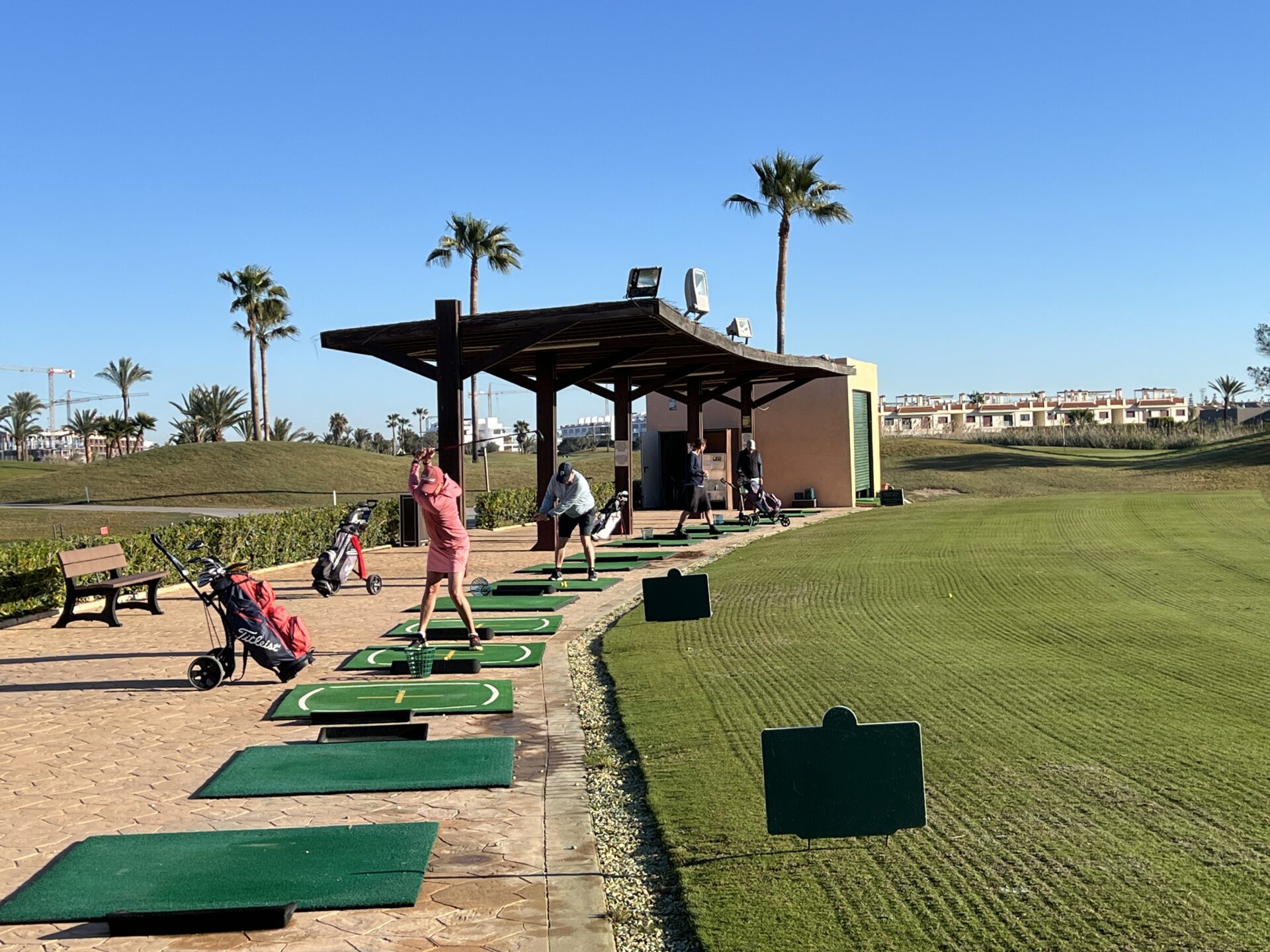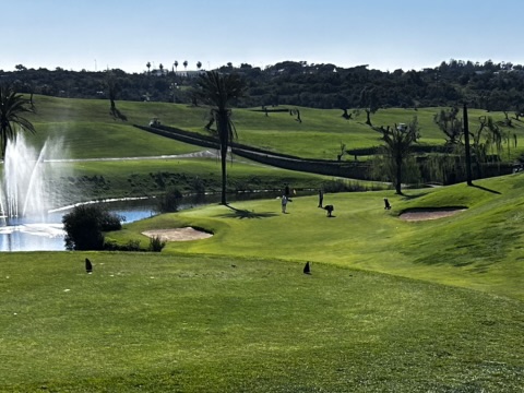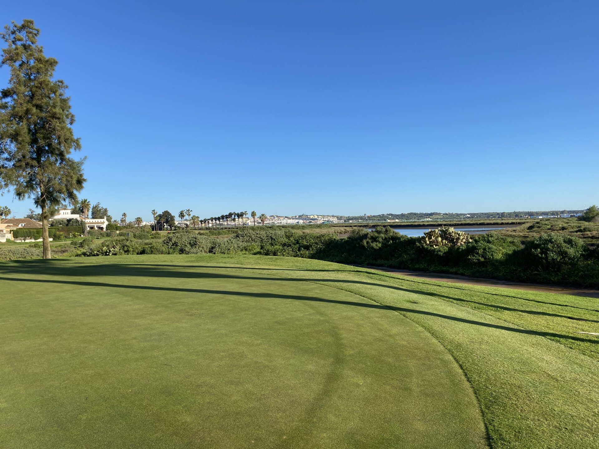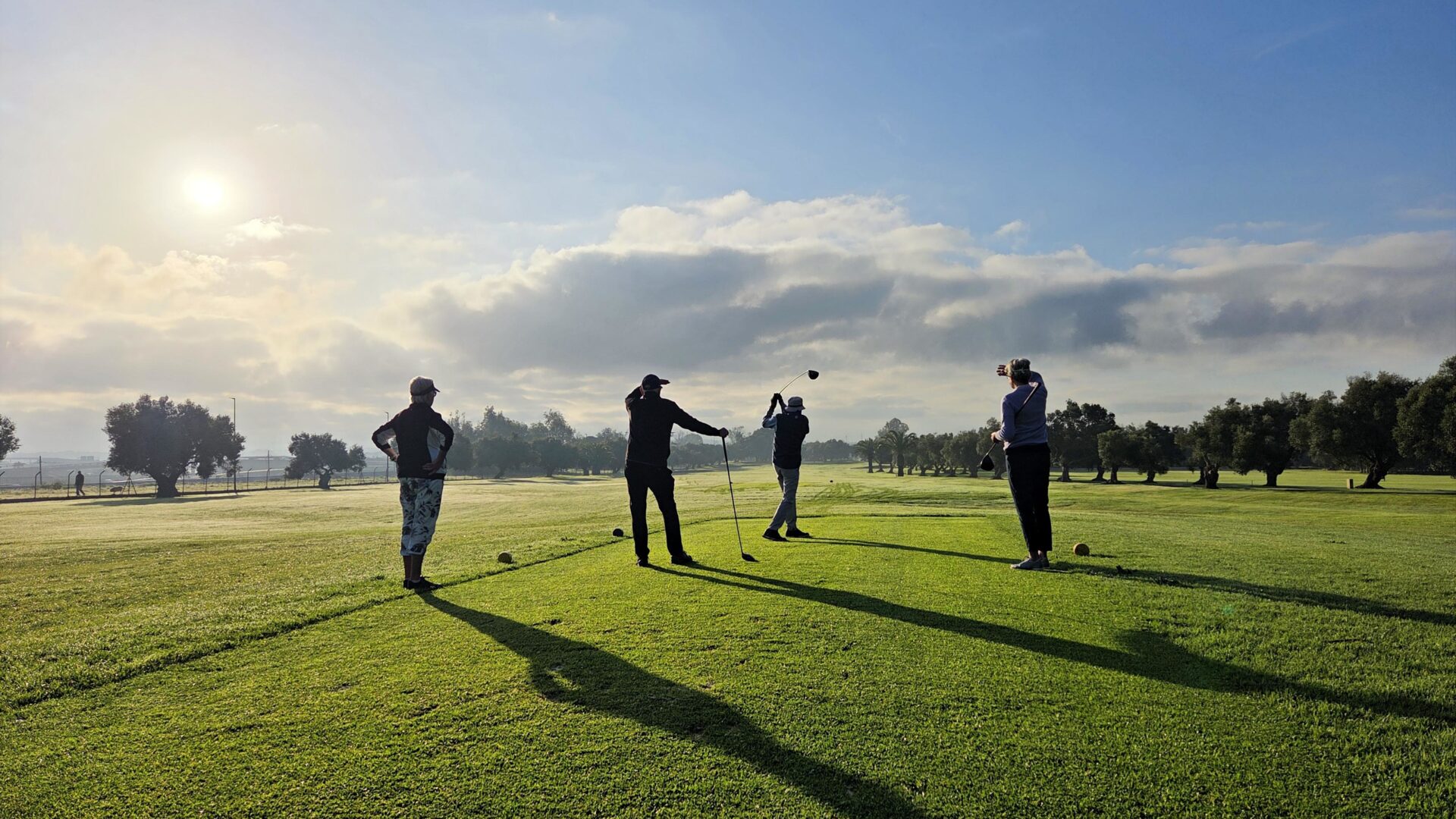 Golfveckan på Hacienda del Álamo avslutades med tävlingen Easton Variant i strålande sommarväder. Från terassen i klubbhuset syns tre Eastongäng på väg in på 18:e hålet, en lång par 5:a.