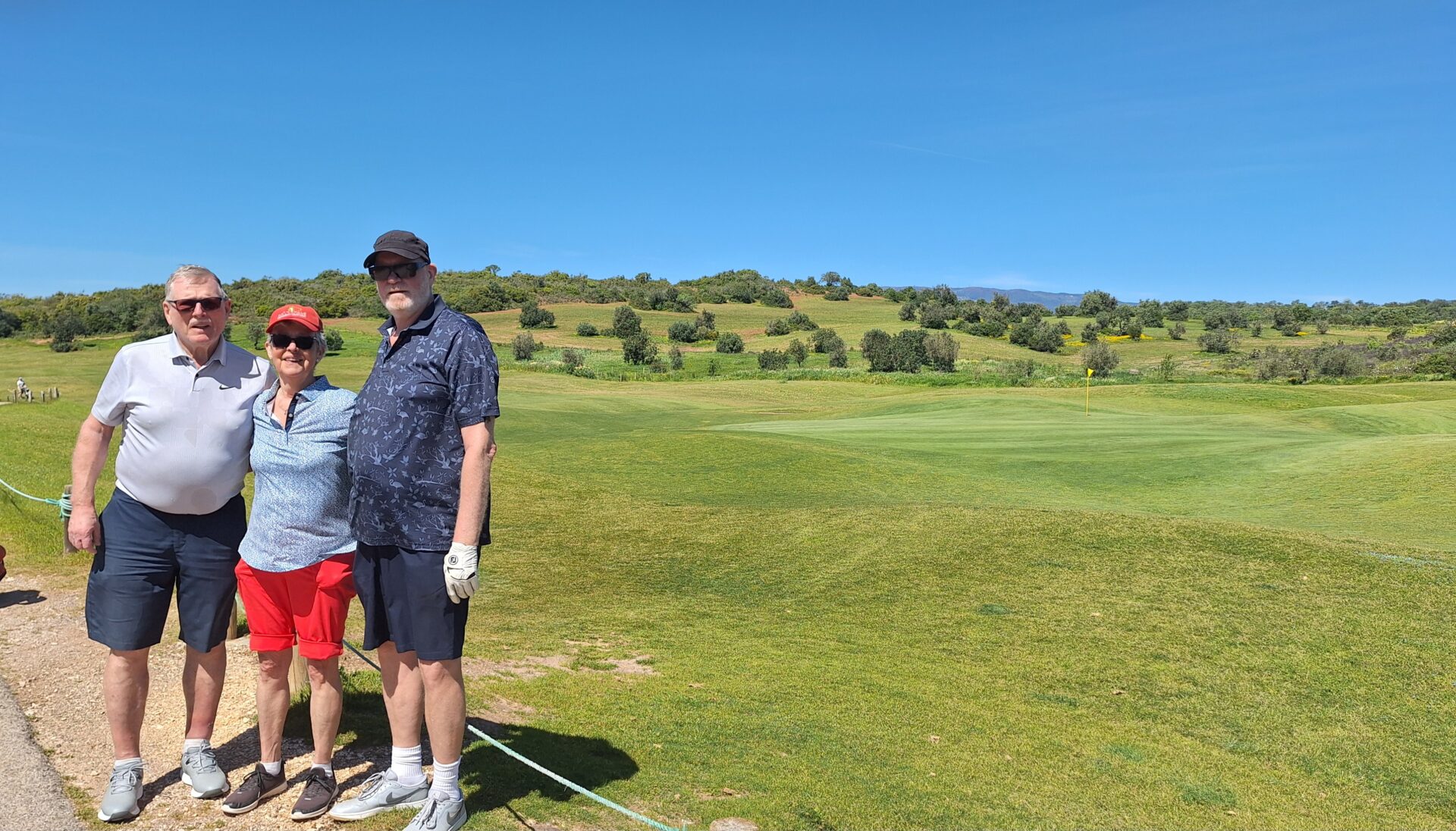 Full fart ända till 18:e hålet på Álamo golfbana! Här ser vi nöjda golfspelare Stefan, Ulf, Åsa och Anders!
