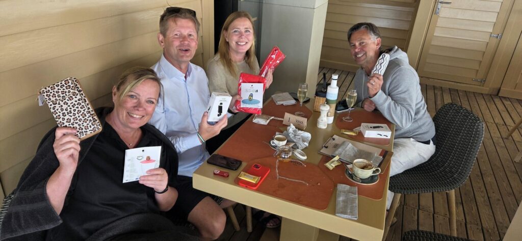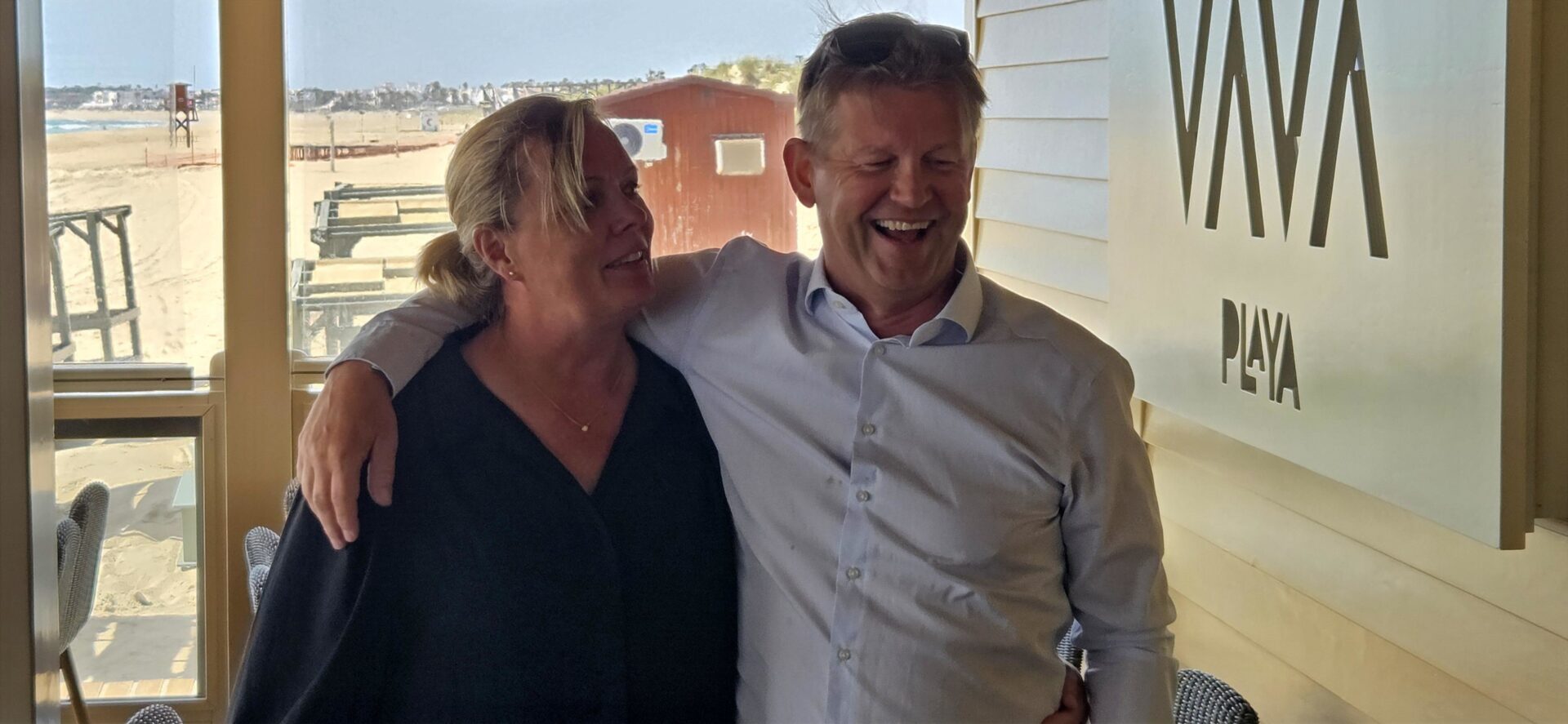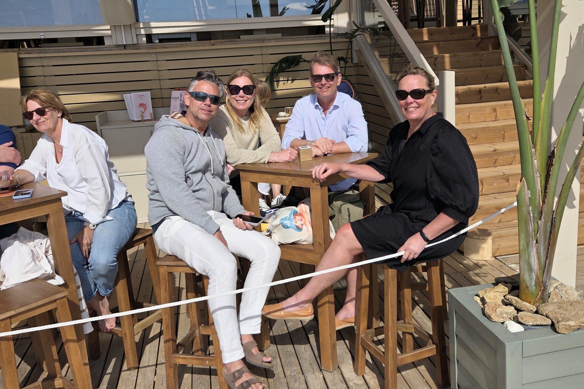 Marika pekar stolt på sin boll efter utslaget när de kan konstatera att hon ”drivit ut” sin Ola (som givetvis jublar på sitt sätt).Hur kan man se så glad ut efter att ha hamnat i vattnet? Tog Robert av sig skorna? Absolut inte! De fick torka i solen resten av rundan. Hur det gick med slaget kan ni se på ”flygande reporterns” film som kommer på slutet.Kommer man bara över buskaget så finns det hyfsat stor plats att landa på.Gänget spelade Real Novo Sancti Petris ”A-bana” och rapporterade givetvis med fina bilder.Hål nr 6, nästan nere på stranden.Utsikt över stranden när man går vidare mot hål 7.Sista prisutdelningen och ”bartömning”. Alla fick pris! Titta vad glada gästerna blev.Förra veckan Marika och Ola. Denna vecka blev Åsa och Robert VECKANS SPELARE och vi sa stort GRATTIS! Vi avslutade på bästa sätt nere på stranden och en nyfunnen restaurang (av klass), VAVA.Hej då, Spanien! Nu åker vi hem och fortsätter träningen.Den sista bilden jag fick på gästerna, Marika, Ola, Åsa och Robert var när de promenerade hem från VAVA, via La Barrosa beach och hem till Al Sur.