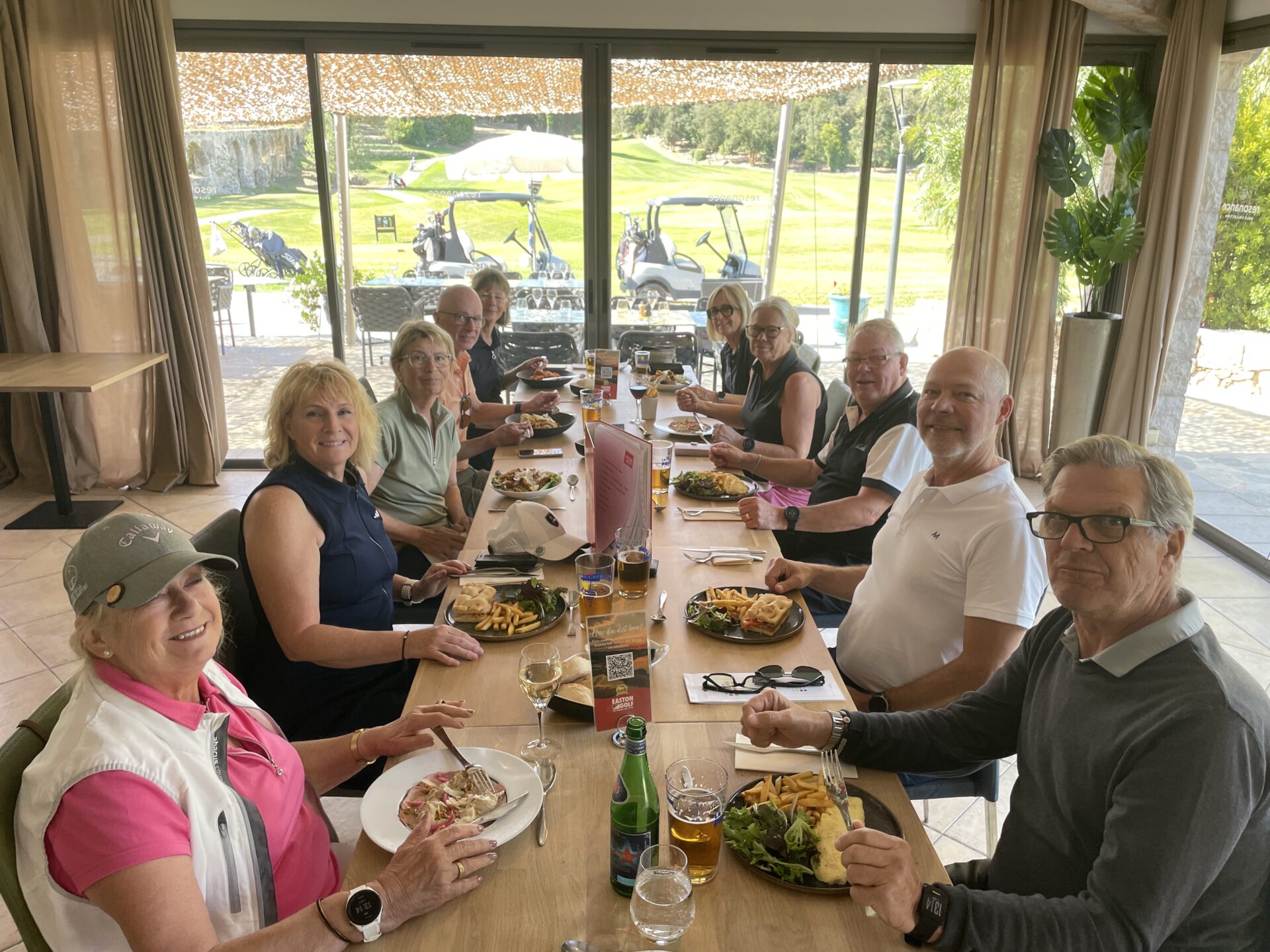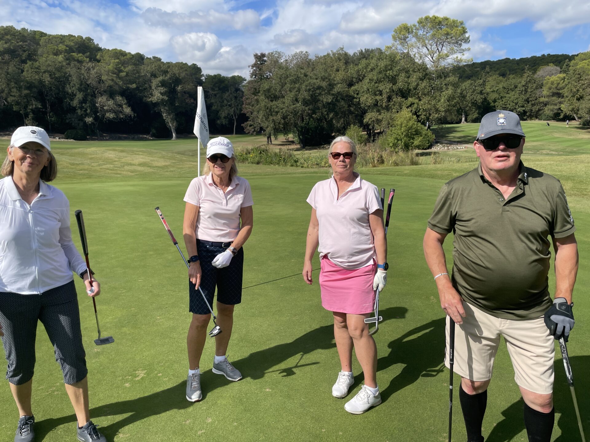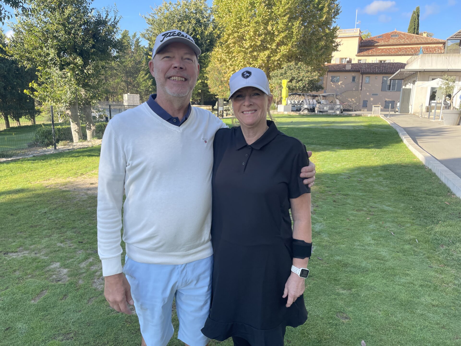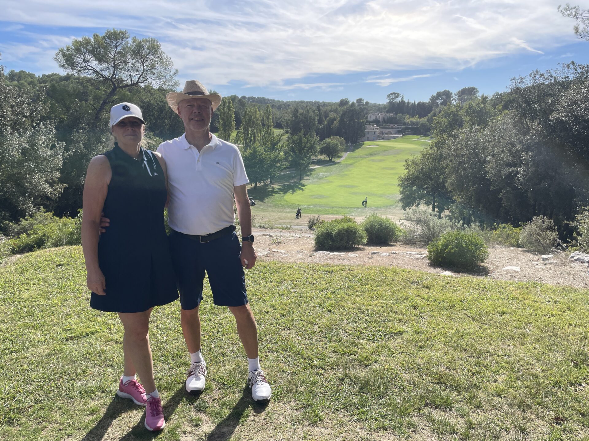 Fin utsikt från Opio Valbonne hål 6, par 4. Mona & Jan