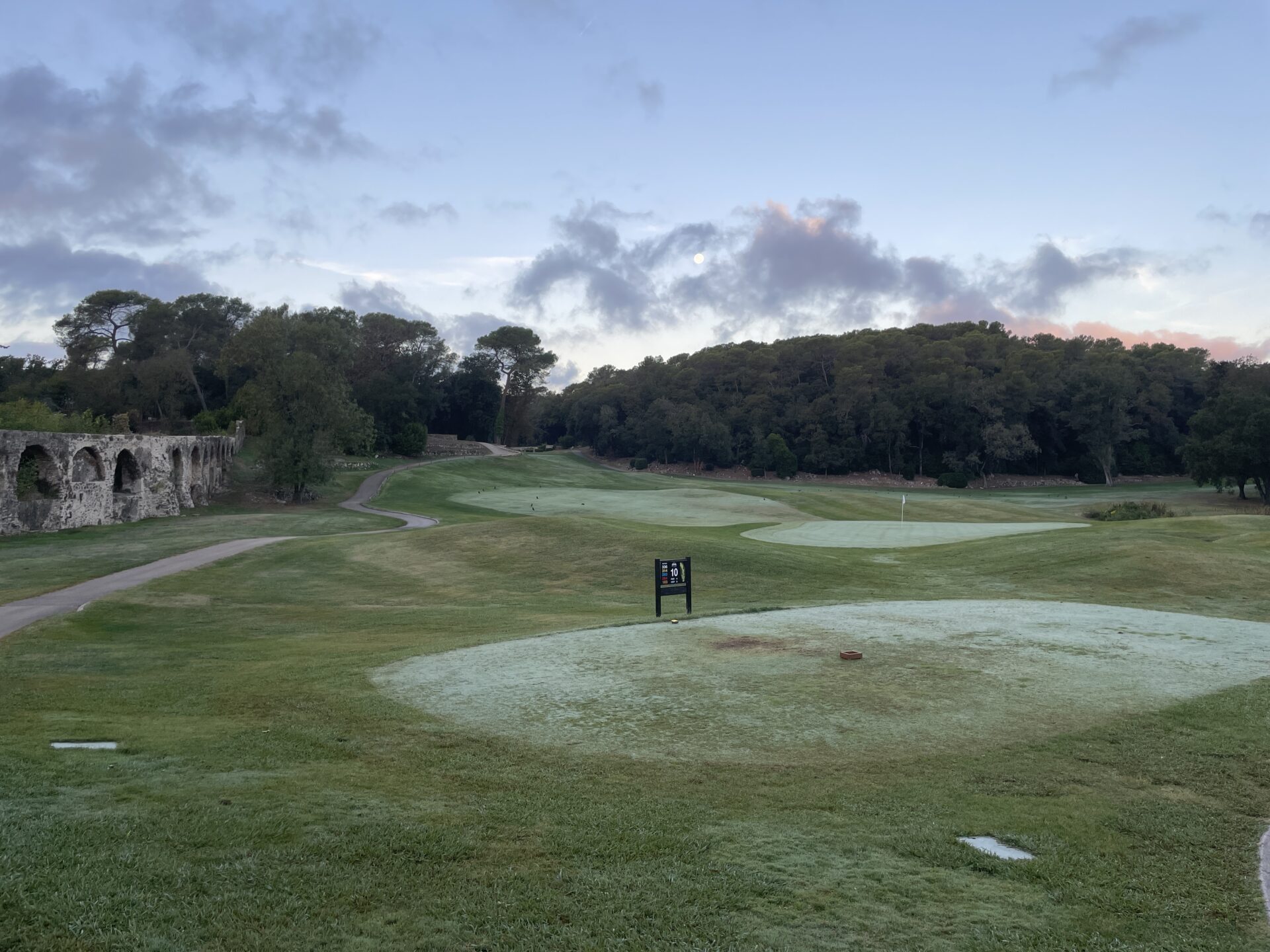 Tidigt på morgonen, hål 10 Tee samt greenen på 18:e
