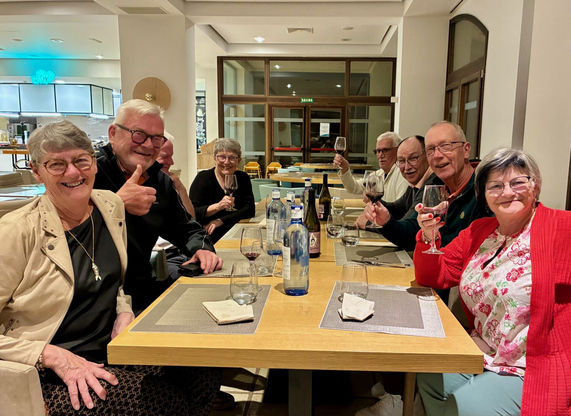 En skål innan läggdags efter middag i goda vänners lag.