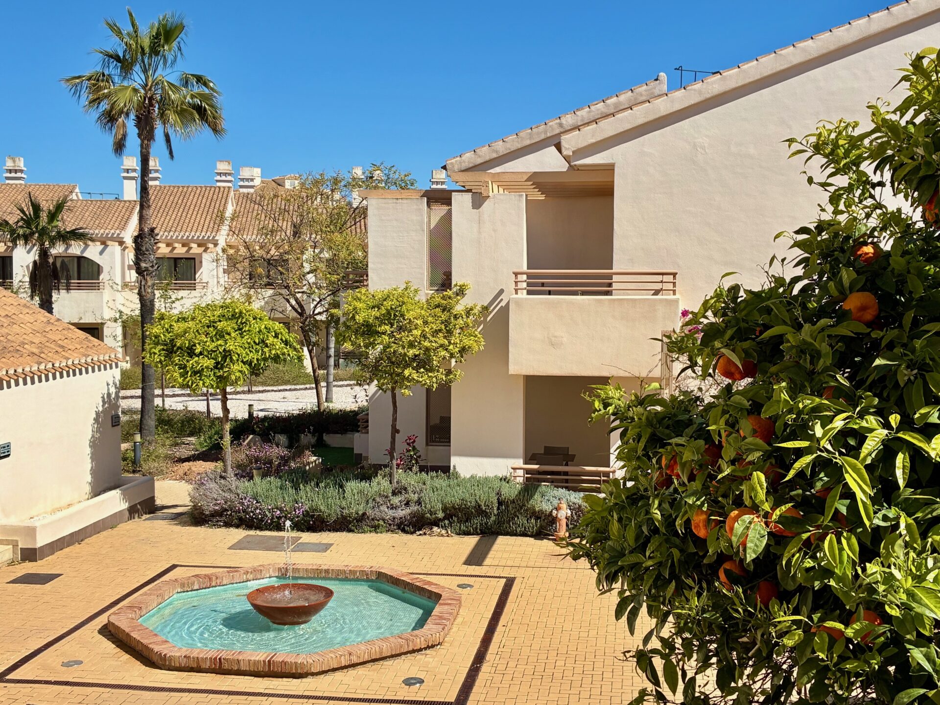 Vill man kan man också plocka en apelsin från trappan.