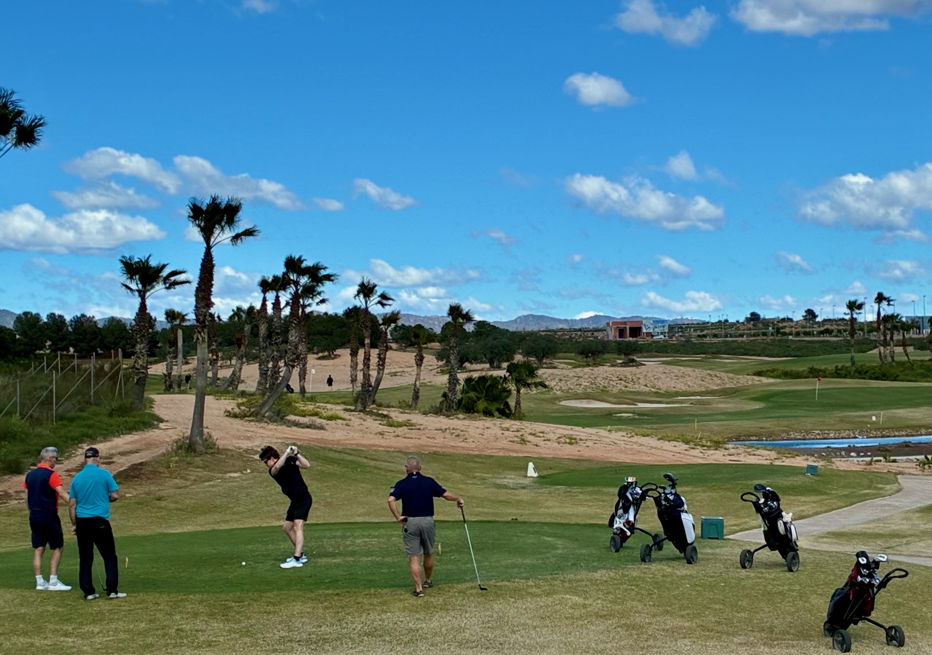 Jan, Gösta, Berith och Eva gjorde sällskap på banan i strålande solsken. De har åkt på golfresa med Easton många gånger och nu var det dags att besöka nyöppnade Hacienda del Alamo.