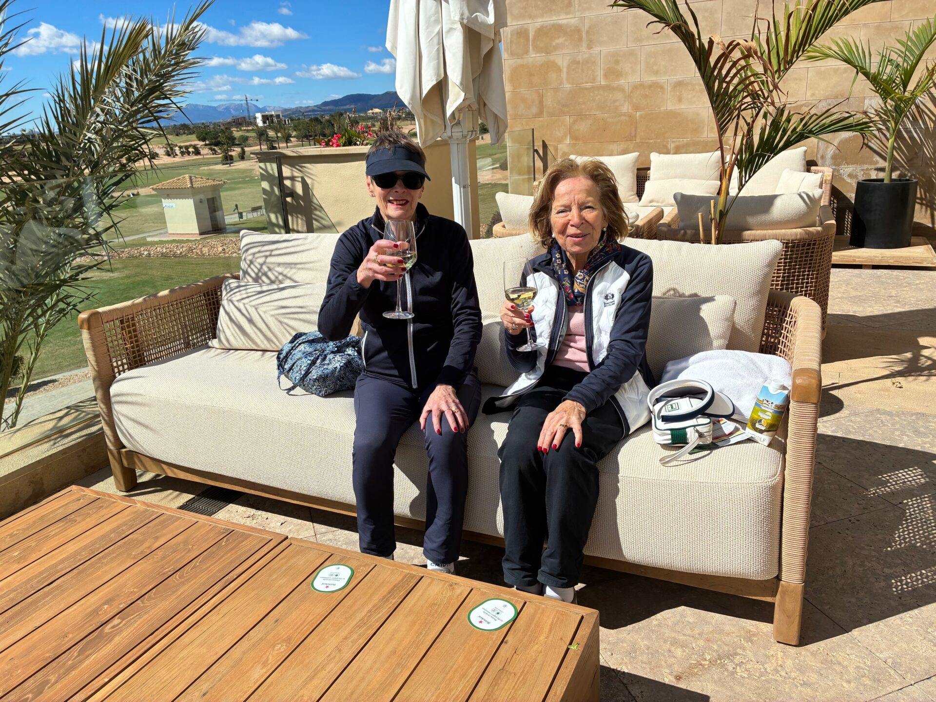 Roligt att hitta gemensamma bekanta tyckte Rose Marie och Elisabeth och njöt i solen på klubbhusets terass.