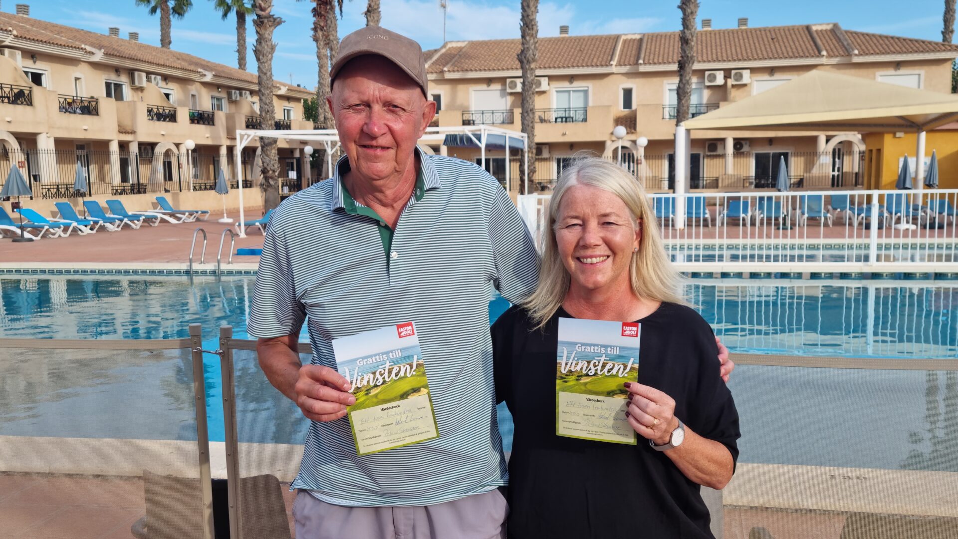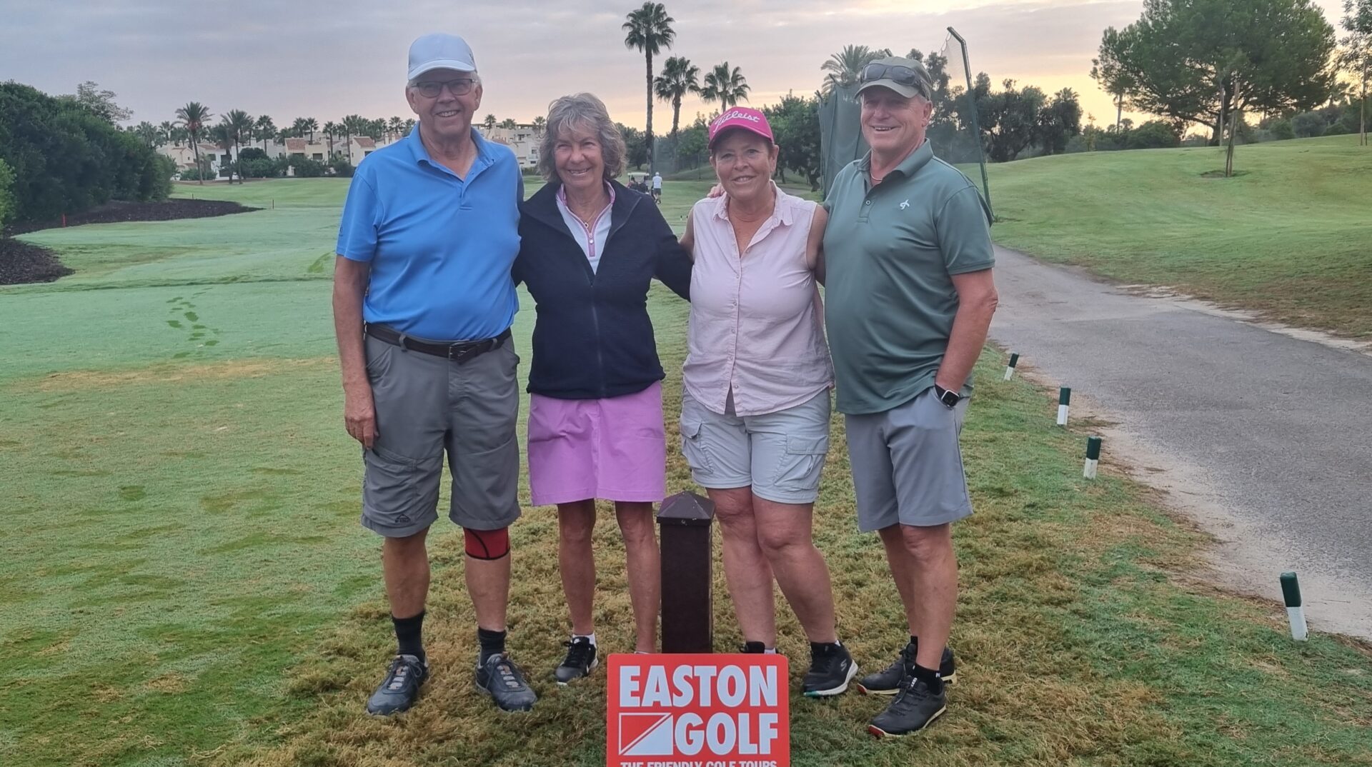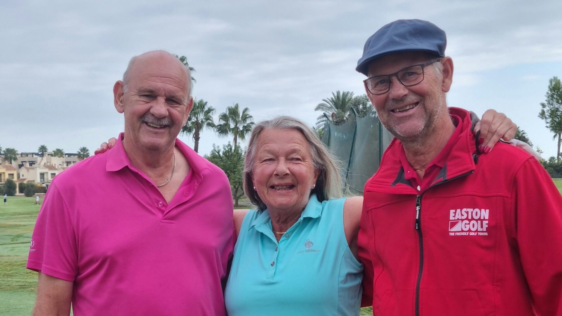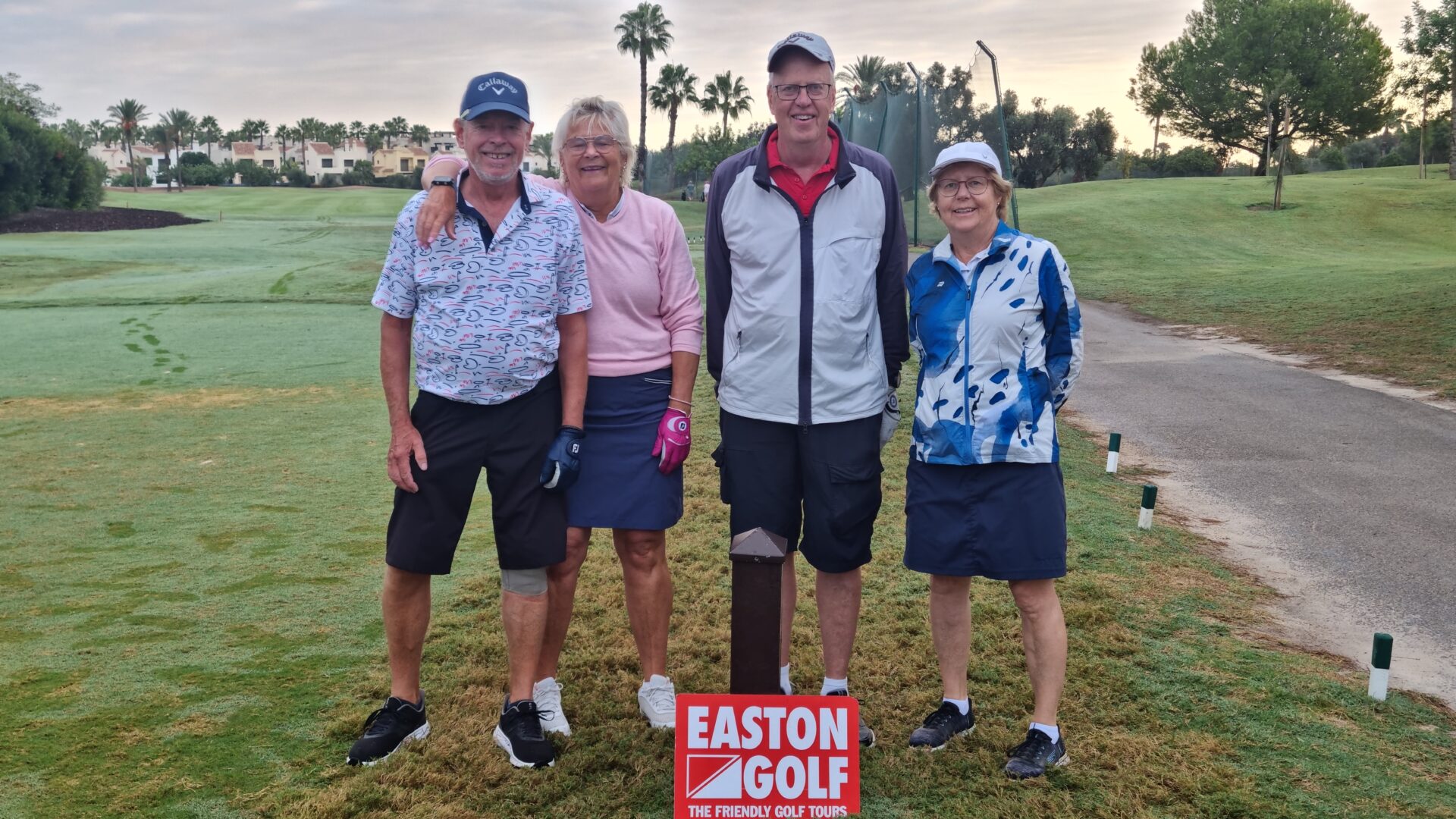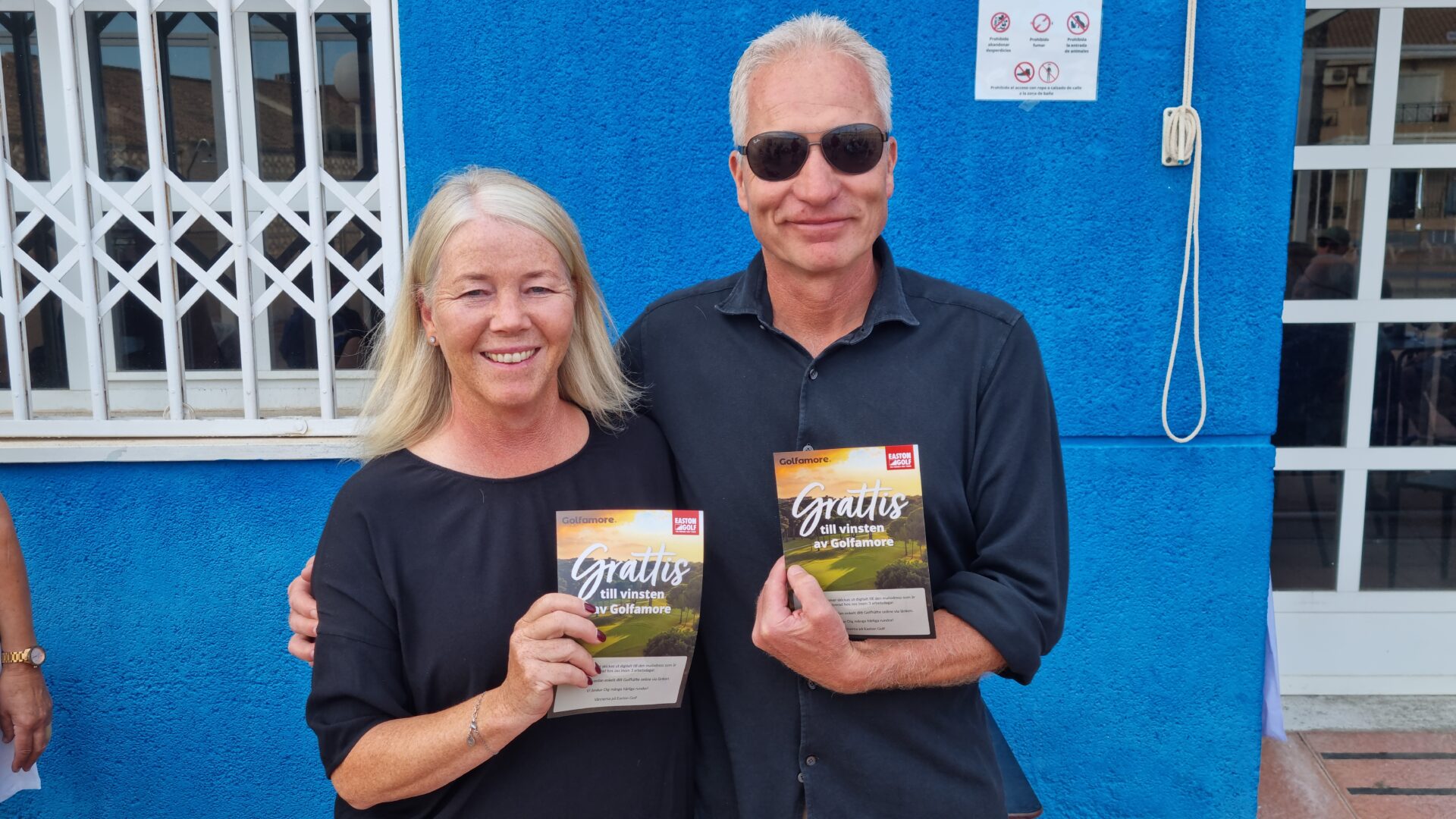 Uppvärmning på Serenas driving range. Ami och Anders ser verkligen till att lägga grunden för en bra runda.Gittan satsar allt på en första bra drive på Serena. Ser ut som du får en bra runda 🙂Dags för partävling på Roda. Let´s dance! Lycka till Anders, Susanne, Bosse och Anita.Två Jan- Olo, med V och F, med sina kära Lena och Angela. Go, Go, Go!Moi Moy med din goa spelpartner Lars-Thonny (LT). Blir en härlig runda tillsammans med Gunnar och Britta.Christer, Karin, Eva och Peter ser fram emot att tillbringa 4,5 timmar tillsammans.De tre damerna Lena, Gittan och Gunilla ser fram emot en trivsam runda med tuppen Hasse.Två spända par inför dagens tävling. Kör hårt Anders, Ami, Anja och Bengt!Peggad och klar 🙂Micke, Carina, Anneli och Janne har bestämt sig. Vi ska bli etta och tvåa i dagens tävling.Eastonvärden stöttade sista paret ut. Ha en bra runda Thomas och Anita!Palmfrukterna hänger vackert efter 18è green.Grattis till Easton Classic vinsten, lag Anneli, Christer, Karin och Janne! Era gemensamma 88 poäng räckte gott och väl till vinst.Ami och Anders skiner i solen med sina Golfamorekort efter Bästbollvinsten. Grattis!Veckans Spelare Christer från Destino de Sol och Ami från Hotel Atrio del Mar visar glatt upp sina värdecheckar till publiken. Ett stort GRATTIS!