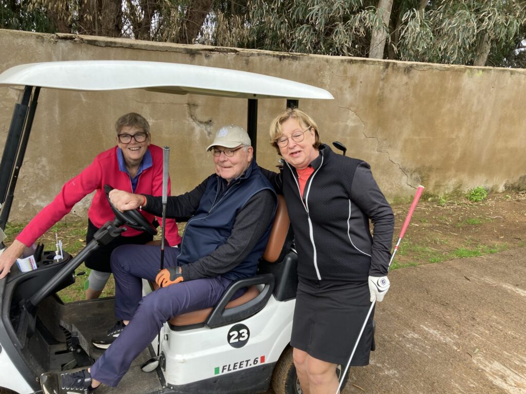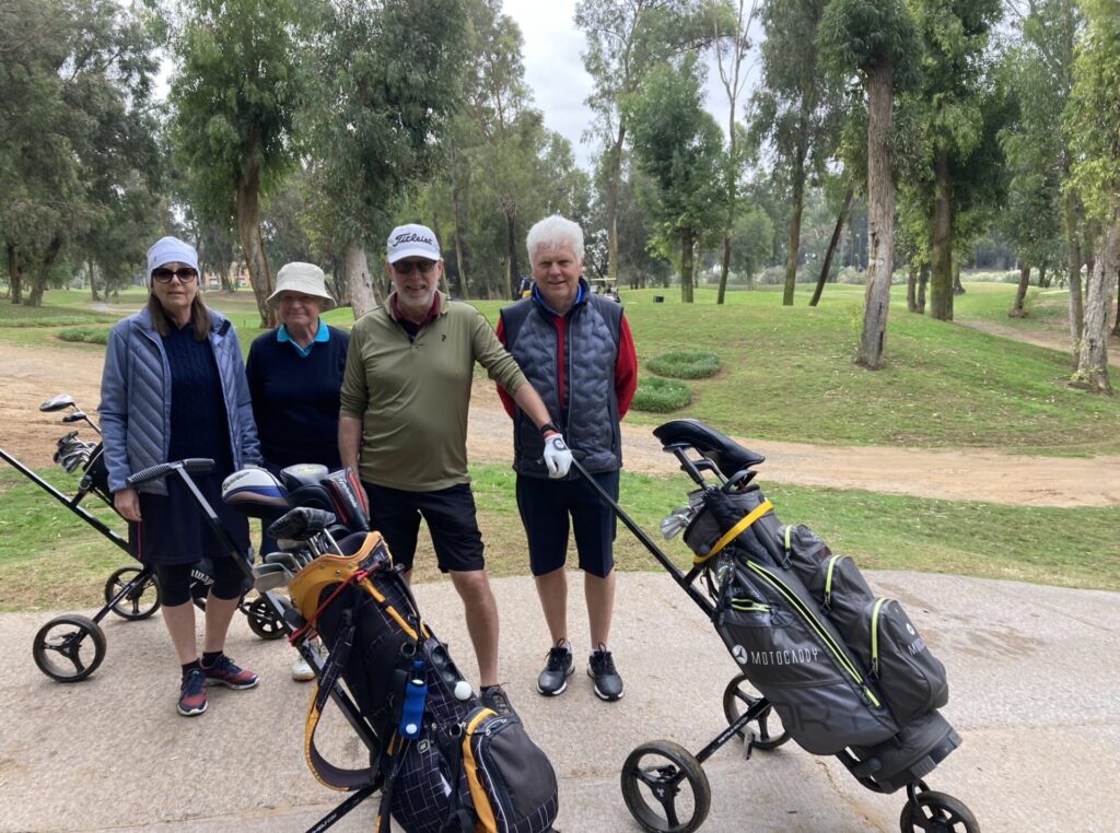 I dag var det dags för tävlingsformen Easton Classic. Många av gästerna värmde upp på Soleils fina drivingrange.Redo för spel var Annette, Ulrika, Jan och Ulf.Liksom Ulf K och Ville.Runt bilen hittade vi Pia, Ingvar och Gunilla.Och veckans vinnande lag har vi här Solveig, Sigvard och John.Efter bra spel funkar det fint med lite skinka och vattenmelon. Tack för en minnesrik vecka .