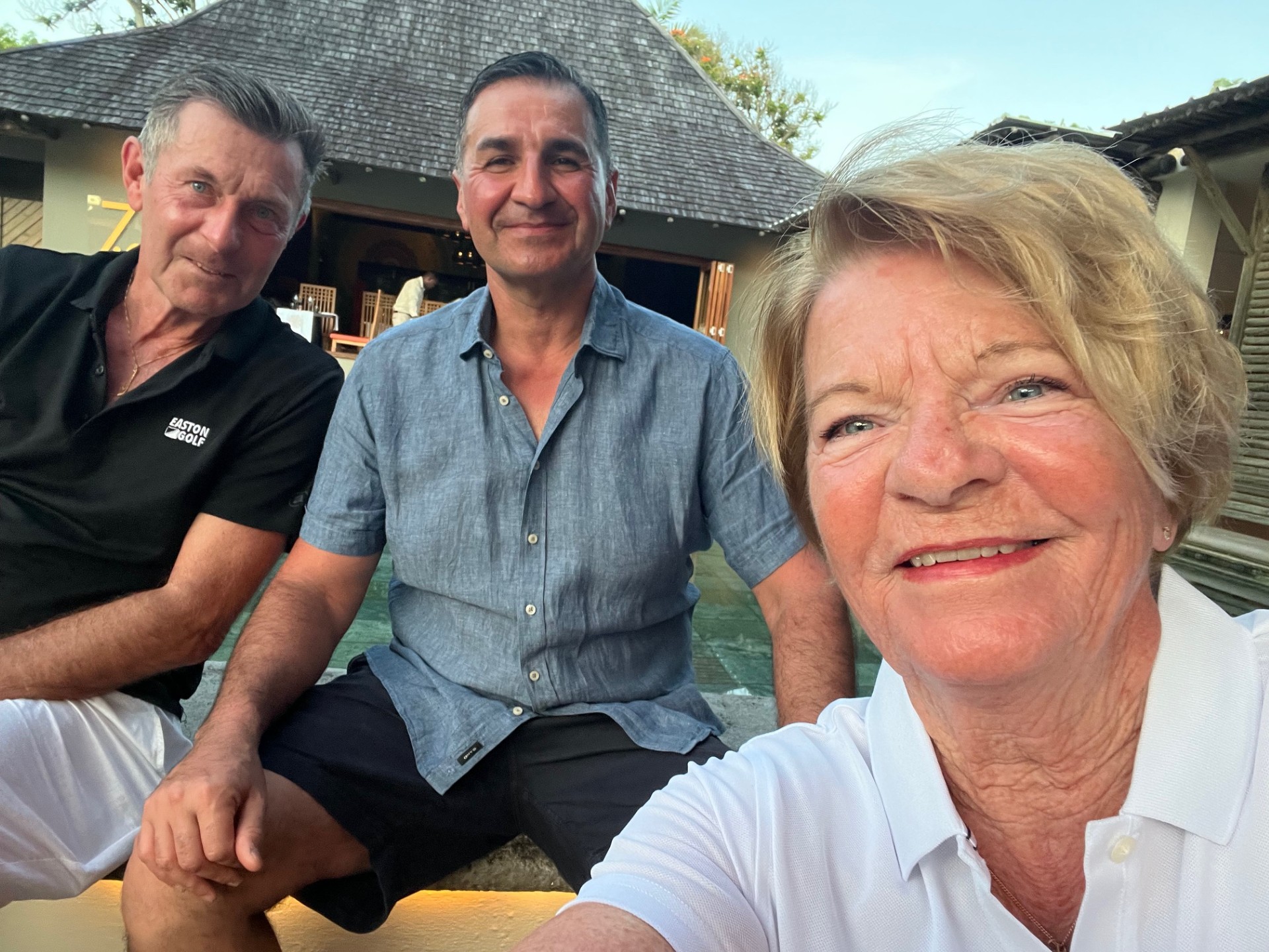 Vid hål 1 blev vi bjudna på en inhemsk rom. Skål Thomas, Peter och Sofia