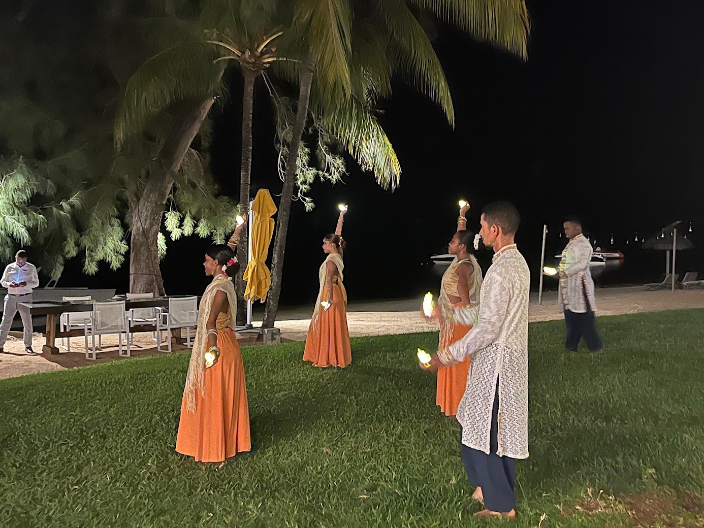 När mörkret lagt sig kommer ett gäng dansare på stranden
