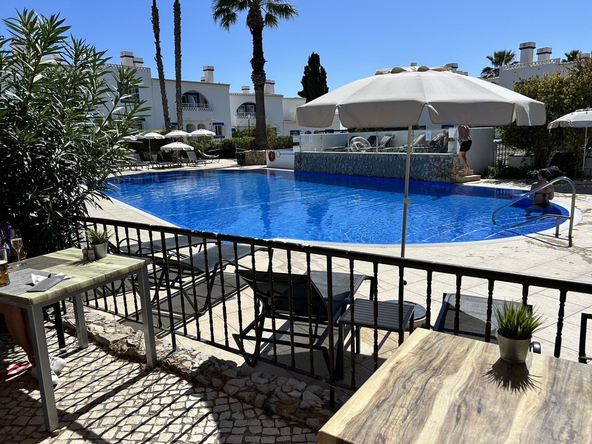 Nyanlända gäster välkomnas av dem som redan tillbringat en vecka här på CampoReal i Portugal. Under en tillfällig renovering av golfrestaurangen har vi fått utnyttja stora hotellterrassen i stället.