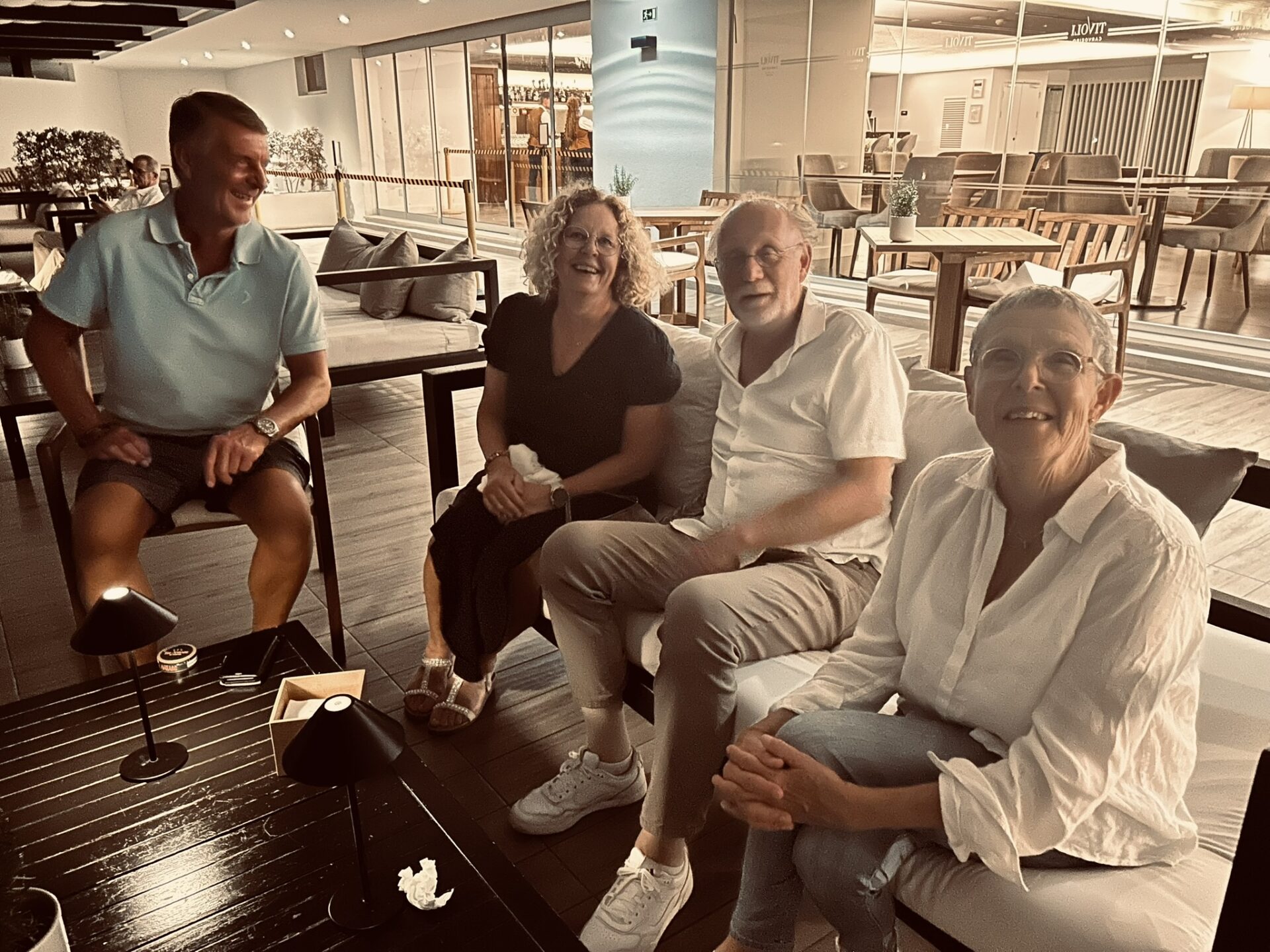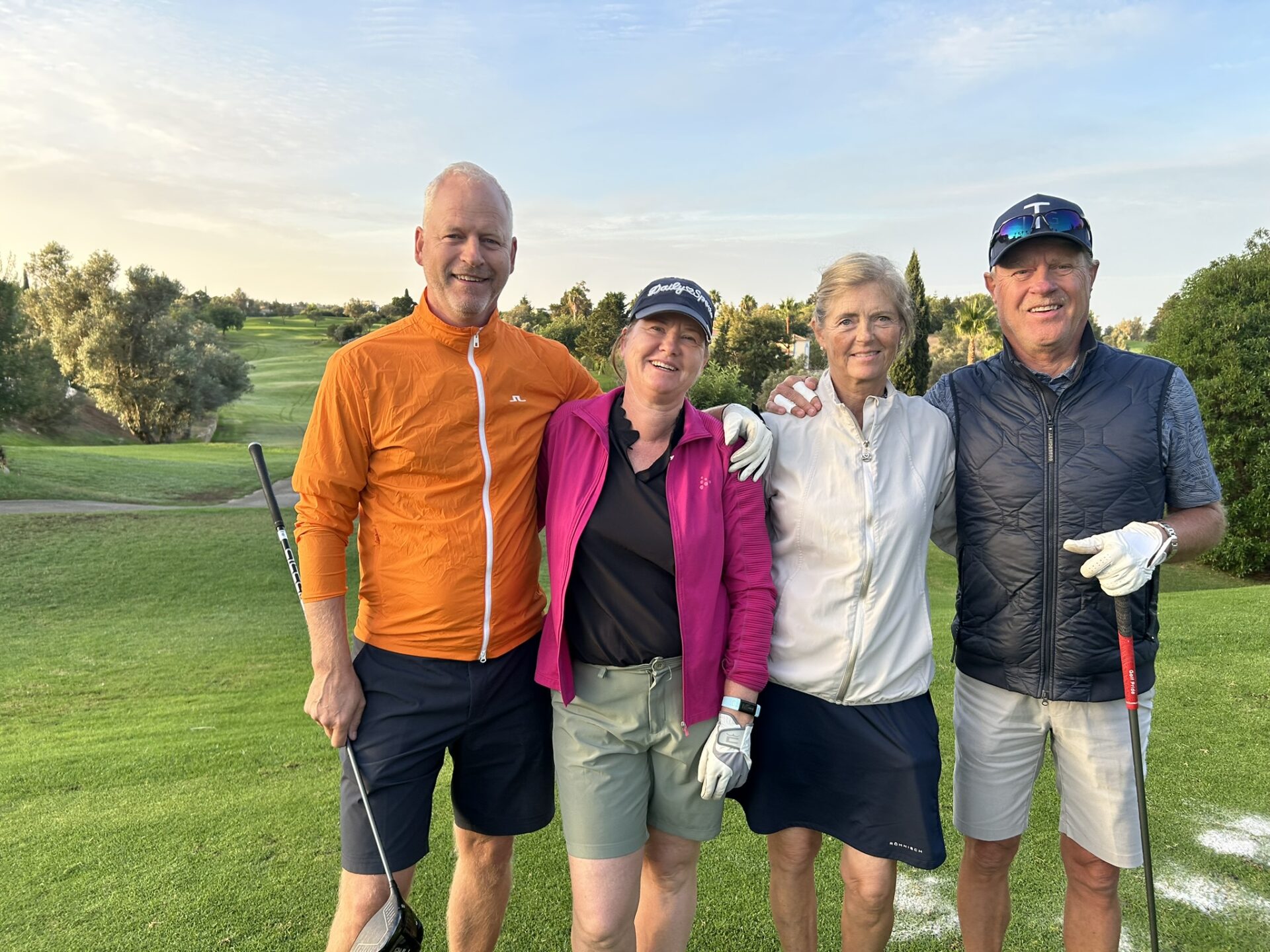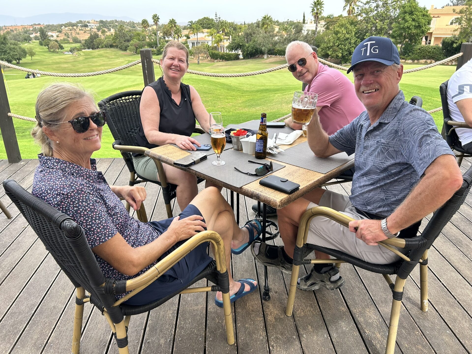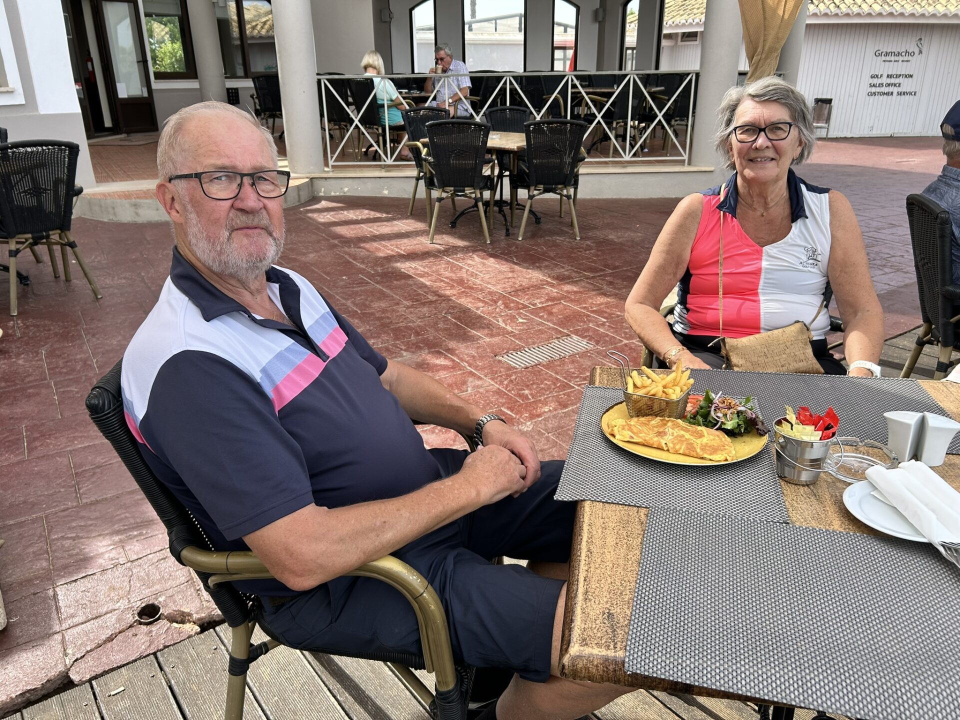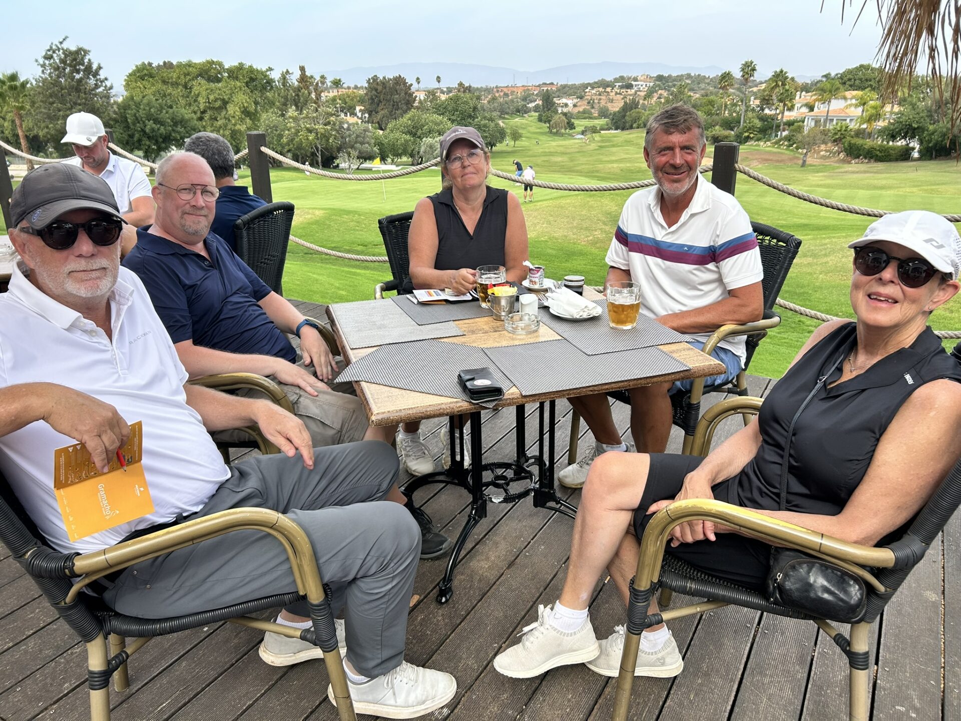 Magnus och Catharina. Agneta och Kenth.Jan och Anette. Mats och Göran med Marie.Elisabet och Stefan.Familjen med Christer och Lisbeth. Per och Dagmar.Efter avslutad rond välbehövlig näringstillförsel på Gramachos härliga terrass med utsikt över 18:e green.