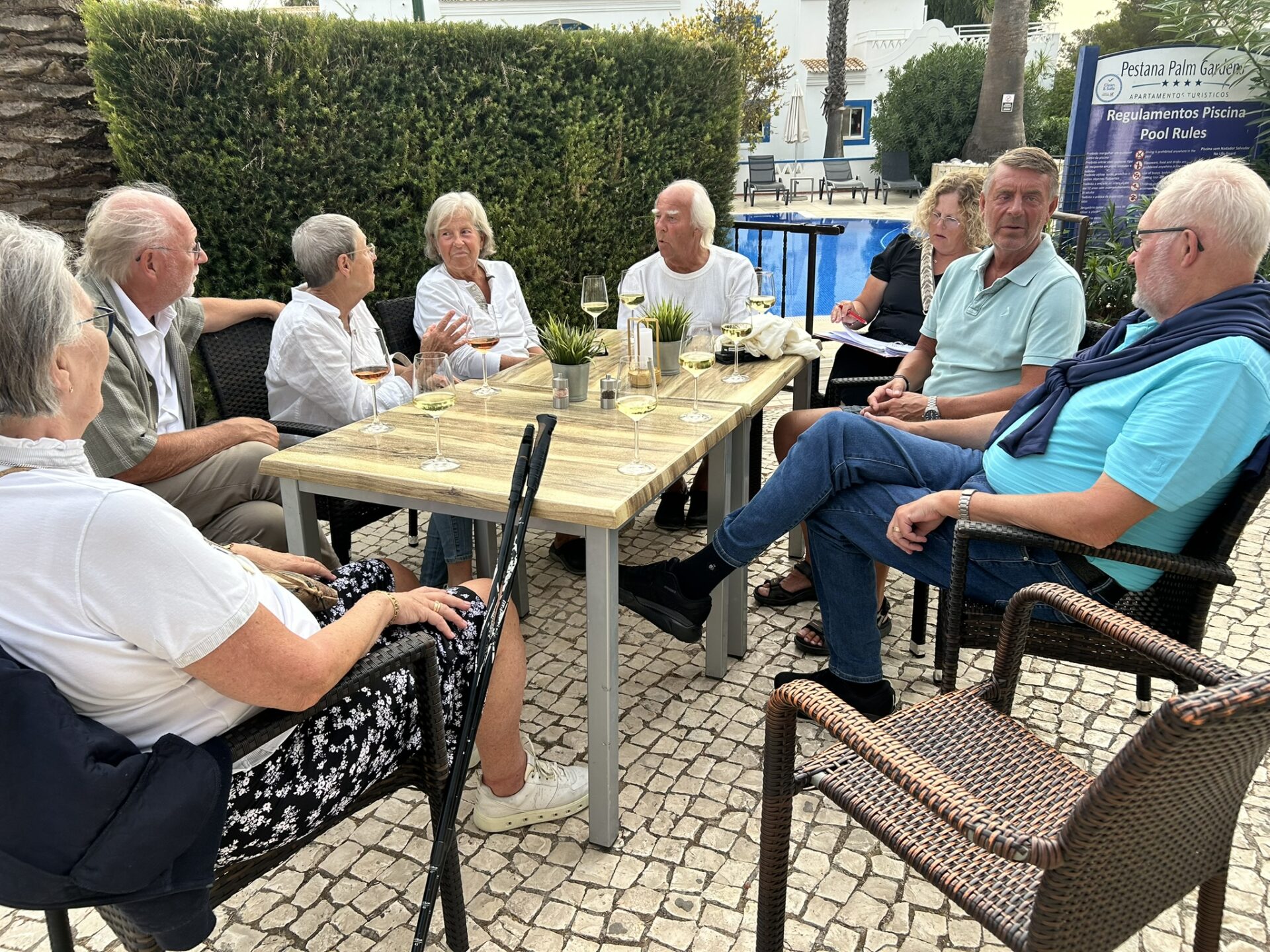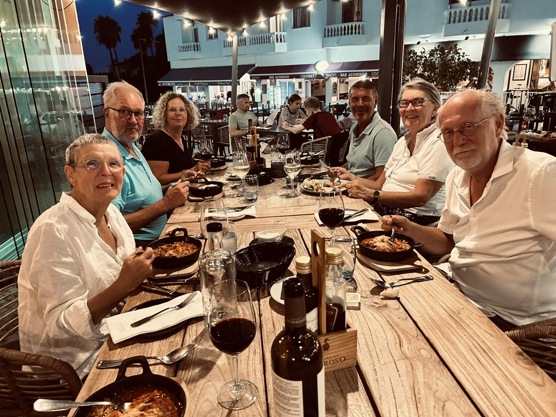After Golf hemma vid Poolen och genomgång av dagens spel innan det är dags att ge sig till….Primavera, där förmodligen den bästa Lasagnen serveras.Efter middag kvällspromenad hem med Pit stop på Tivolis terrass med den underbara utsikten där man hör vågornas skvalp från Atlanten.