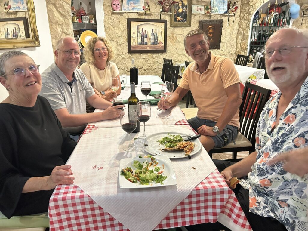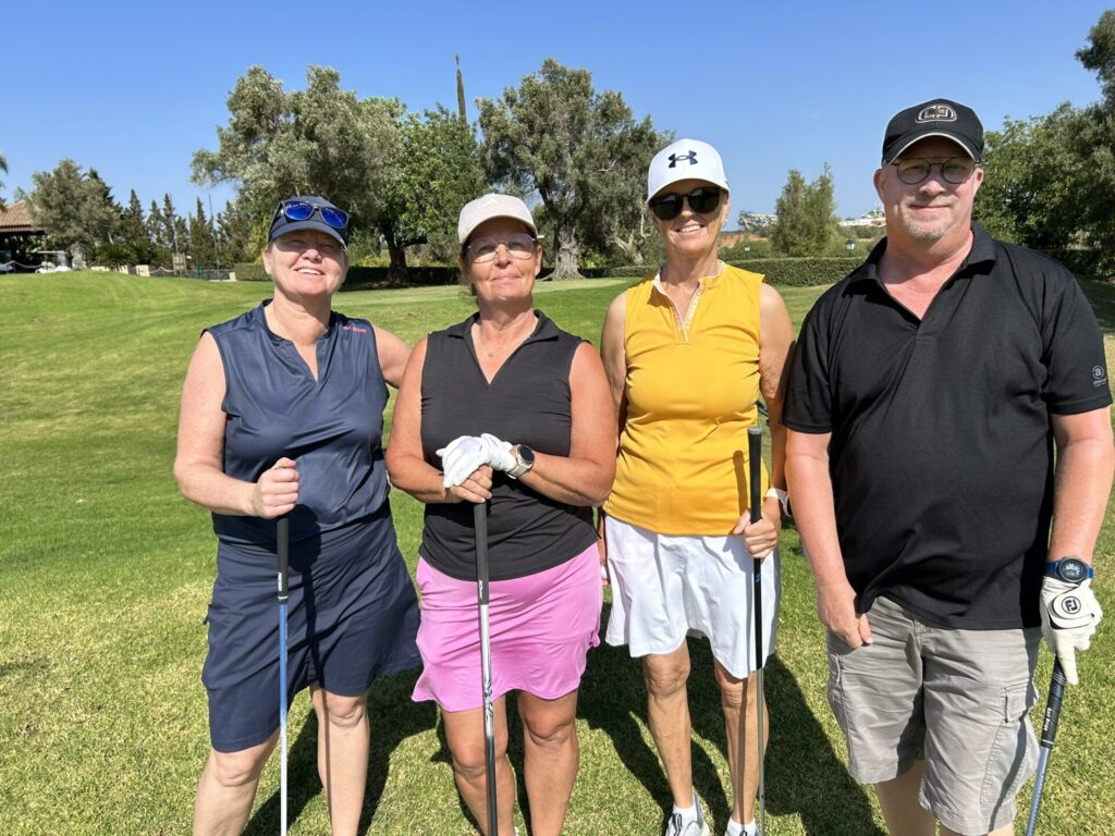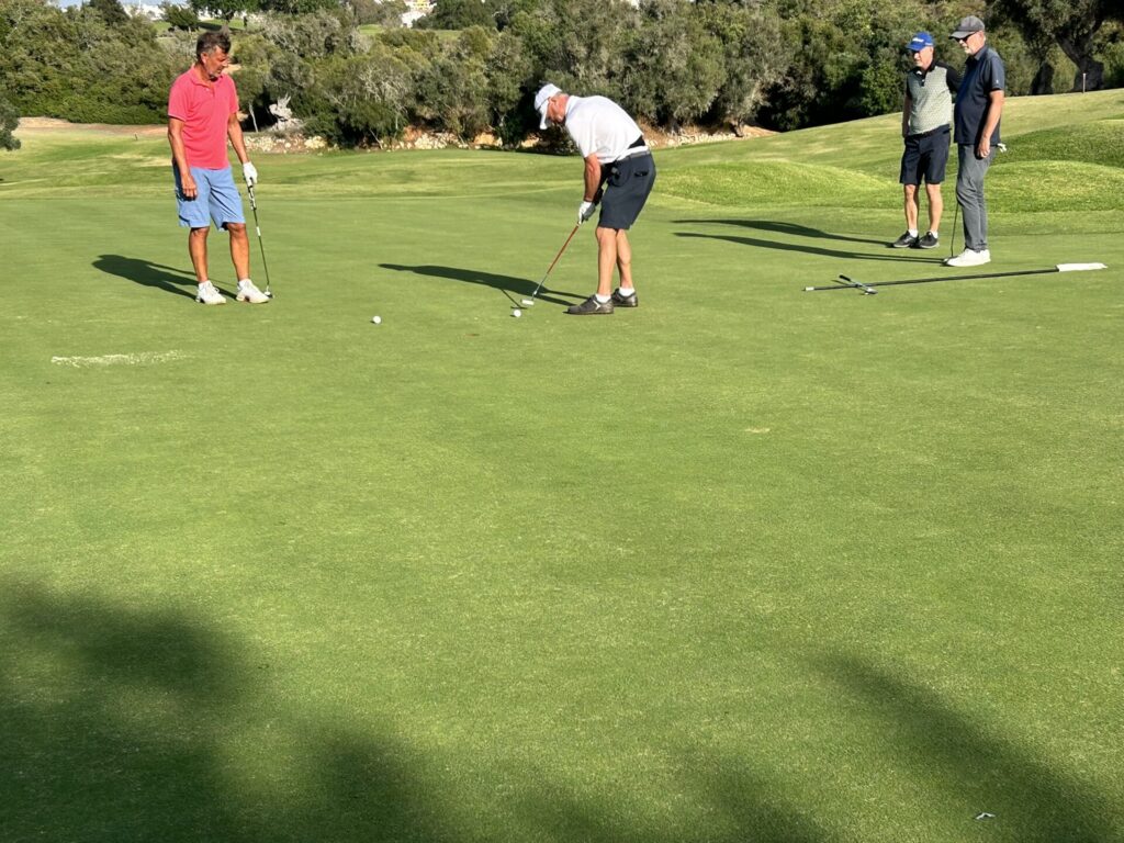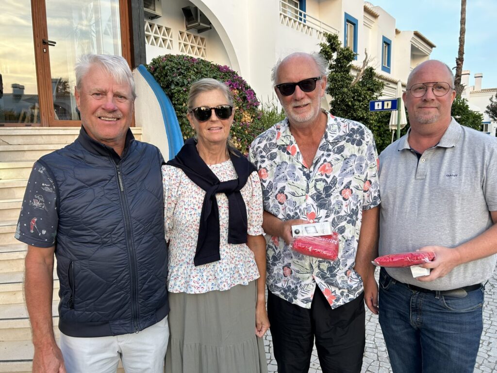 Veckans singeltävling spelades på Pintas mästerskapsbana. Här 15:e hålet, par 3.Trogna och fokuserade caddyn Marie, Göran, Janne, Magnus och Kenth.Catharina, Anette, Agneta och Mats.Elisabet och Stefan.Kenths enkla birdie på 16:e efter ett precist inspel med den heta wedgen.Prisutdelning på Palm Gardens. Kenth och Agneta vinnare i Bästboll. Göran och Mats tvåa. Kenth vann dessutom Närmast hål på Gramachos 4:e.Singeltävlingen. Göran tvåa och vinner Närmast hål på Pintas 5:e. Agneta segrare och Veckans Spelare. Champ för en vecka.Efter en händelserik vecka är det som en belöning att avnjuta dom bästa pizzorna på Mona Lisa.Vi hörs snart igen från charmiga och gemytliga Palm Gardens. Lars-Erik