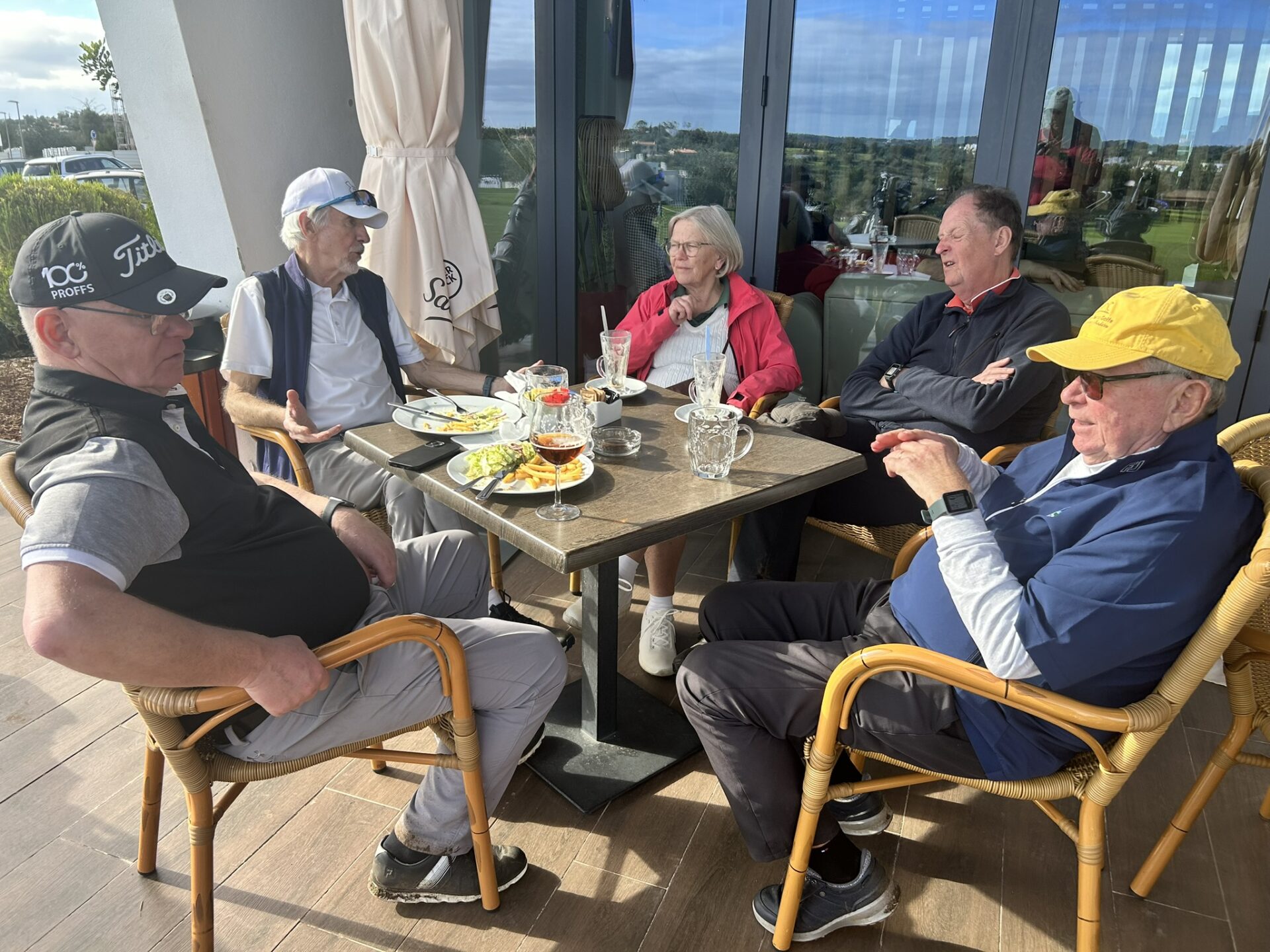 Äntligen har vädret börjat stabilisera sig längs Atlantkusten och solen börjar titta fram och vi ser fram emot härliga golfdagar.Det här härliga gänget tog Silves i besittning. Majtan och Eugene, Andwers, Per Arne och Peter.Genomgång av årets första rond på Terrassen ovanför 18:green.Sedvanlig After Golf på VIP hyllan i restaurangen. Elisabeth och Olle har nu också anslutit.Vi hörs snart igen från charmiga och gemytliga Palm Gardens. Lars-Erik