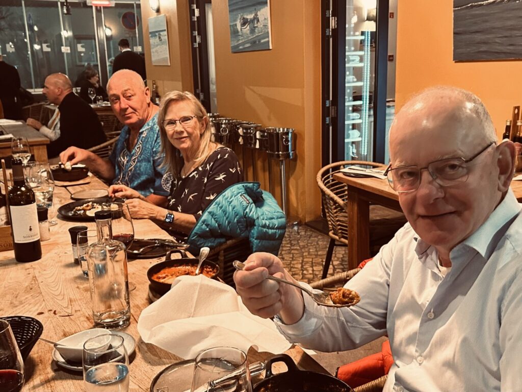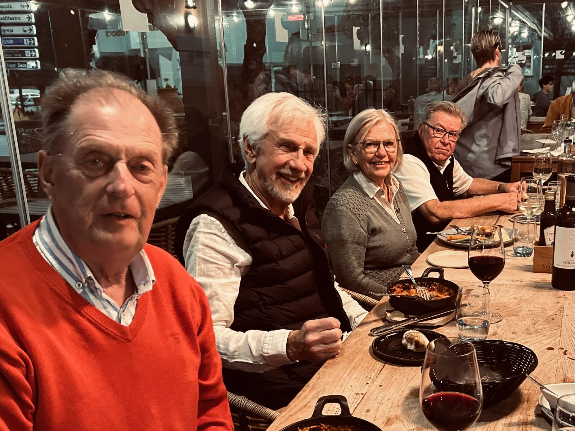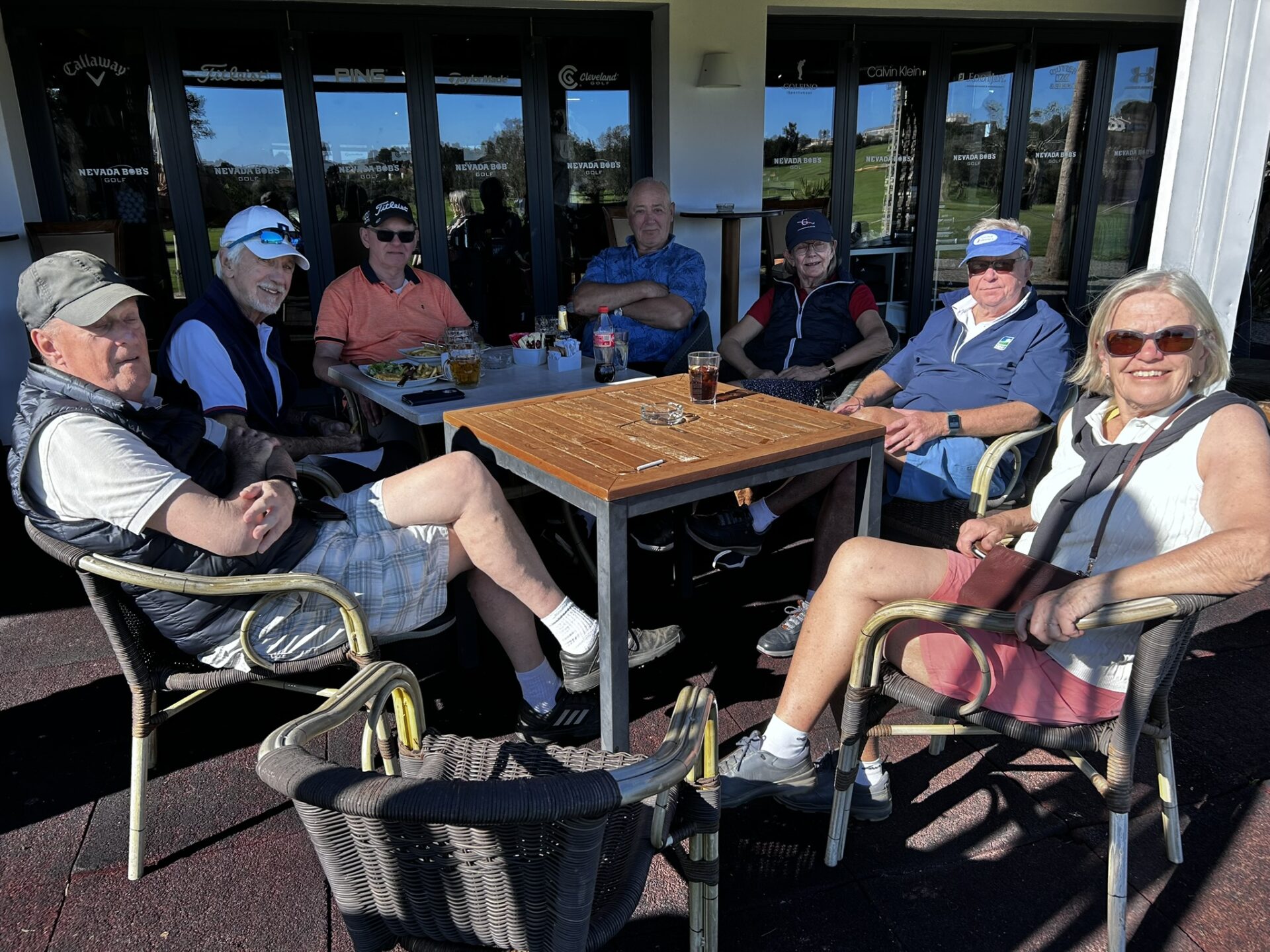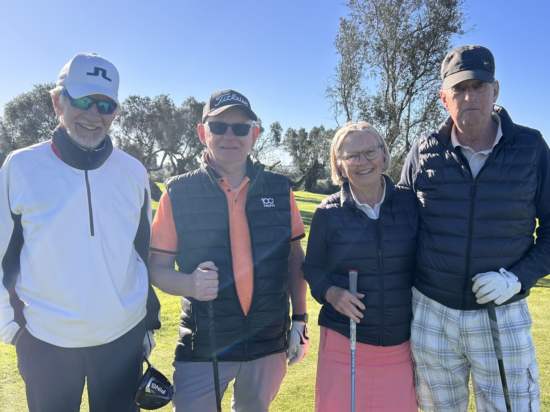 I strålande väder. 18 grader under klarblå himmel avslutade vi veckan med singeltävling på Pinta. Här nionde hålet. Par 4.Per Arne, Peter, Majtan och Eugene.L-E, Anders, Elisabet och Olle.Efter avslutad rond avkoppling och förfriskningar på Pintas soldränkta terrass.Prisutdelning på Sal&Tal. Majtan och Eugene vinner Scramble Bästboll. Elisabet vinner Närmast hål.Singeltävlingen: Olle vinner Närmast hål, Elisabet tvåa och Per Arne vinnare. Per Arne blir också Veckans Spelare.Sedan, rask promenad till populära Primavera för veckans gemensamma middag.
