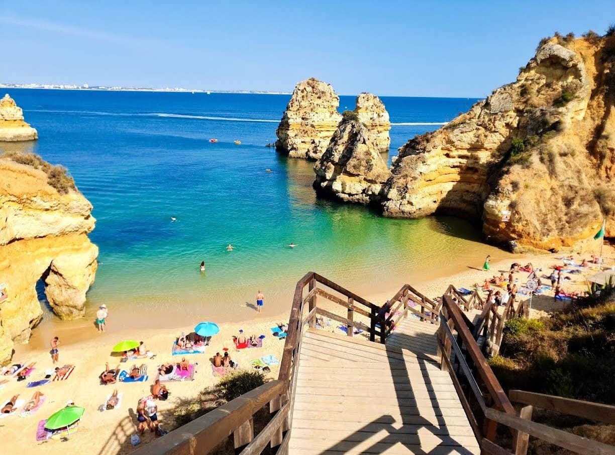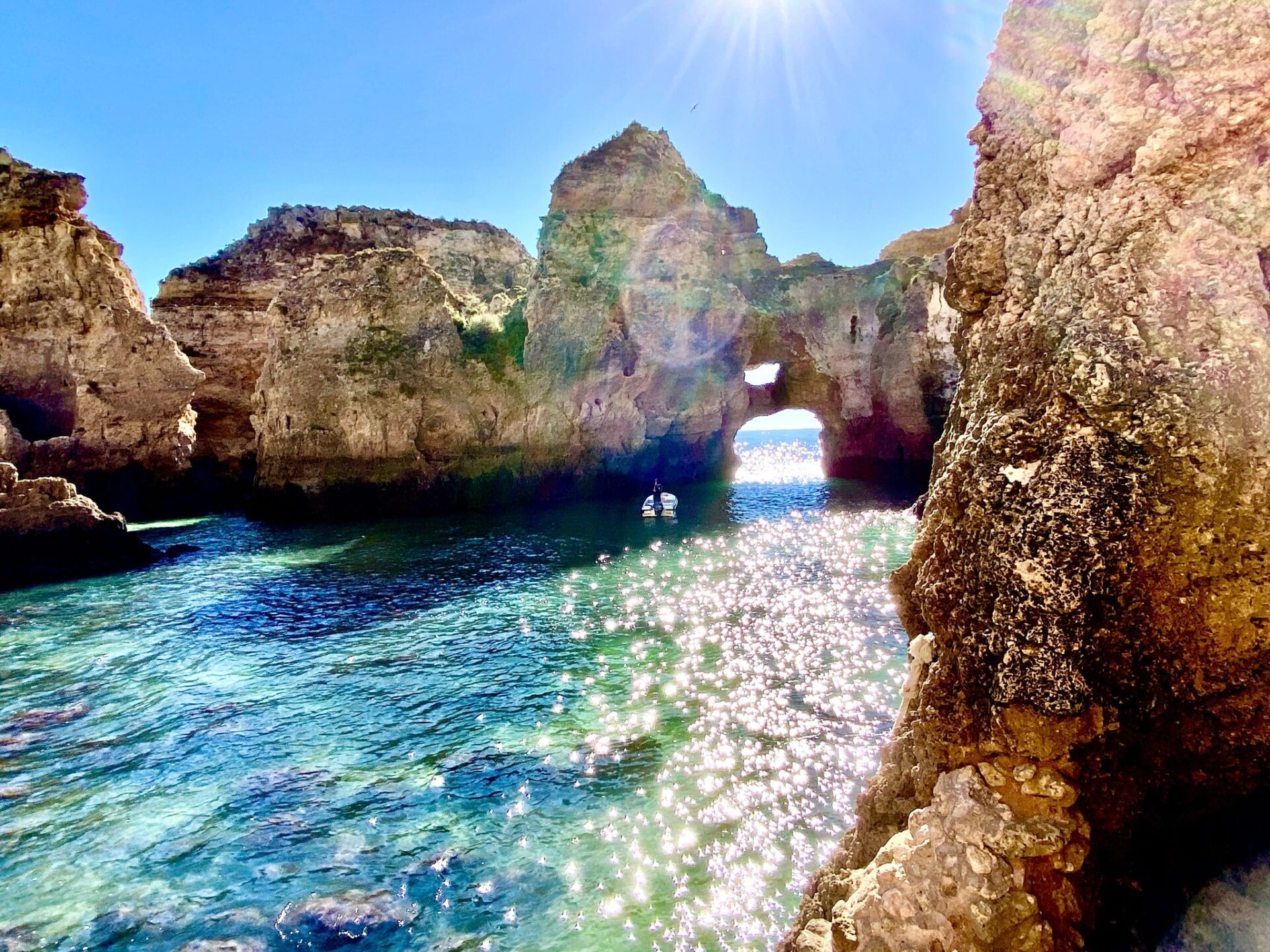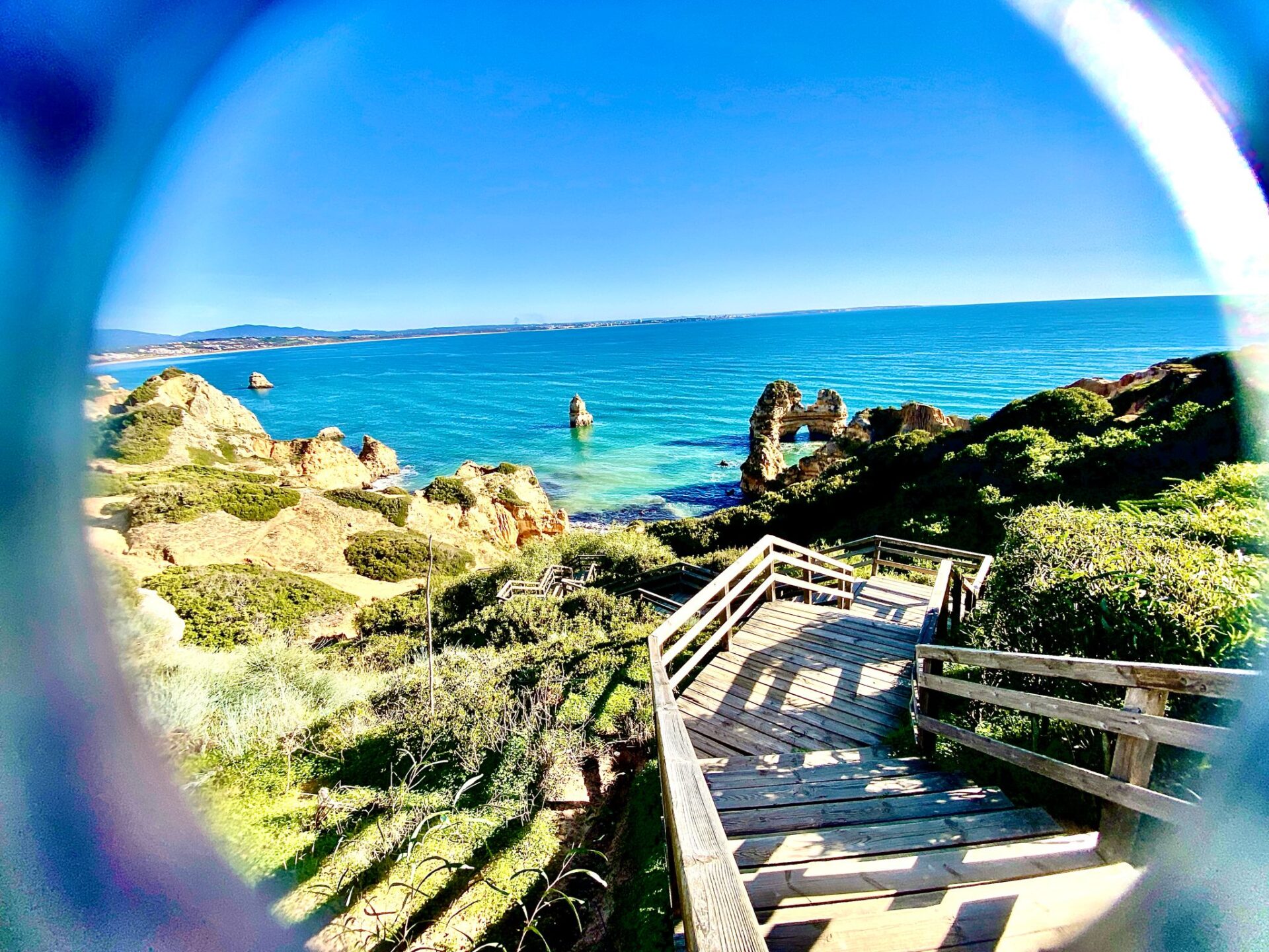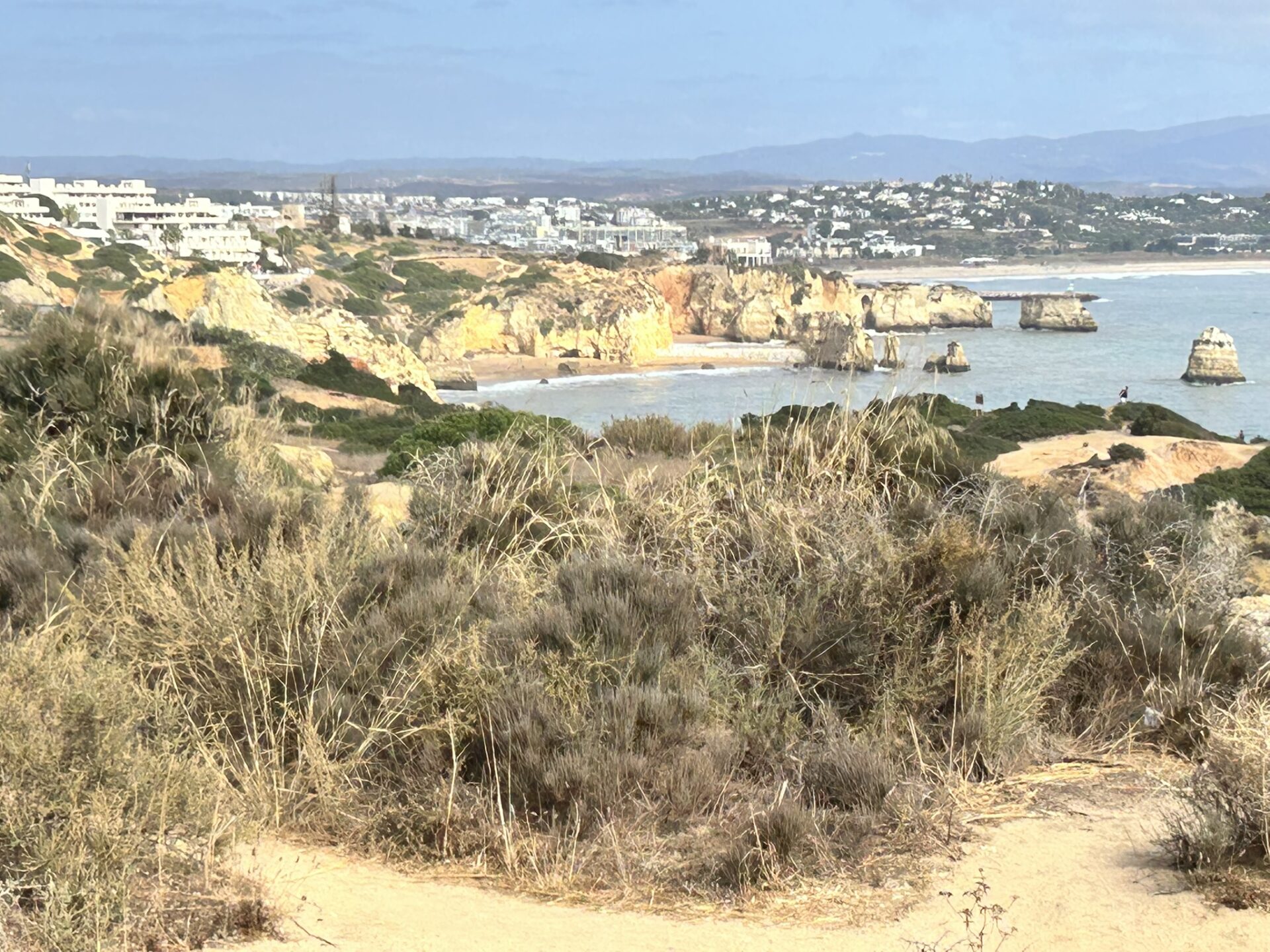 Gänget från Västkusten tidig morgon i strålande solsken på Palmares. Olle, Elisabet, Anki och Thomas.Efter golf upptäcksfärd runt Lagos med en glad Viking (Olle).Strövtåg på vackra natursköna Ponta da Piedade.