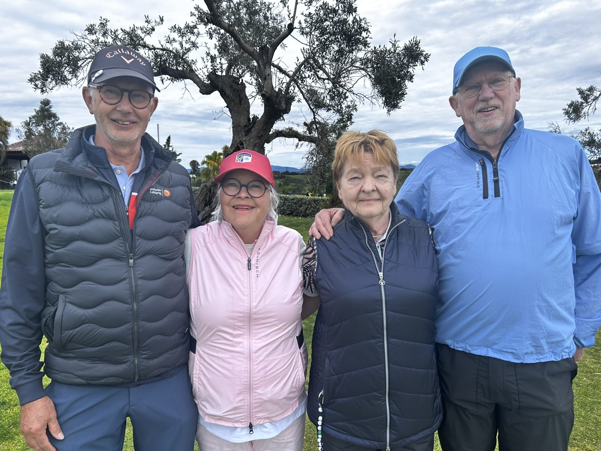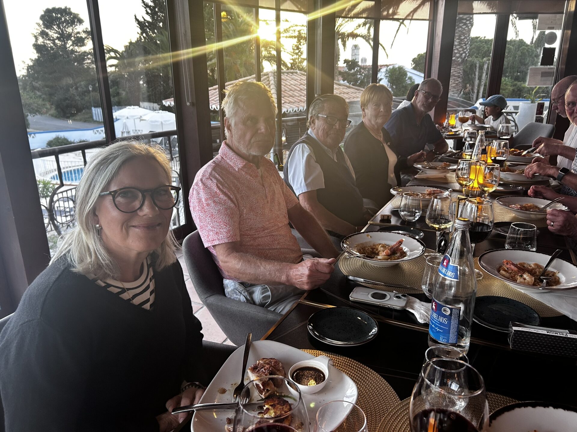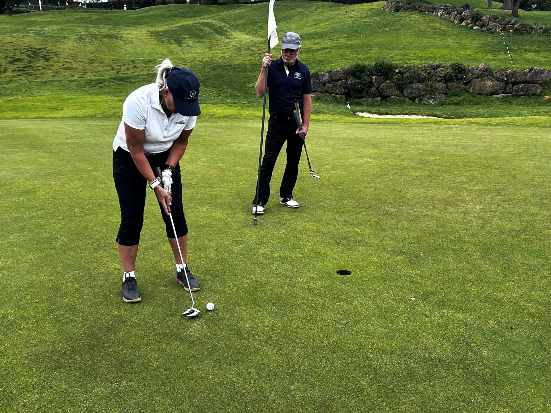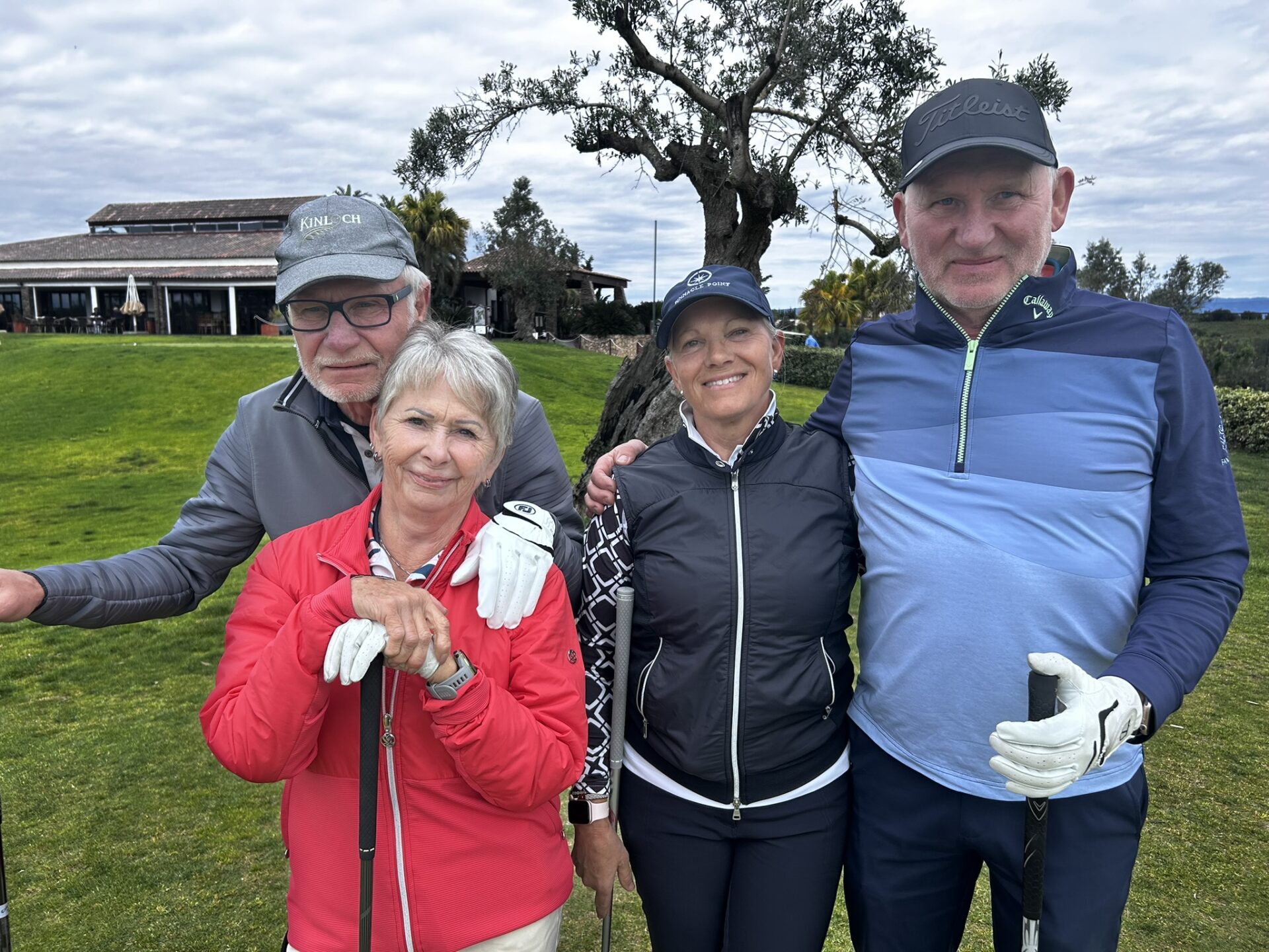 På Pinta spelade vi säsongens sista tävling. Här hål 1 med en uppstigande sol.Margaretha och Roger.Cai, Tina, Carina och Jörgen.Anders, Doris, Monica och Karl.Exemplariska bunkerslag från Cai.Och sedan Carina. Båda sandy par på tvåan.Vem kommer så här nära på 5:an?Jo Carina och enkel tap in för birdie.Dags för prisutdelning. I Bästbollen vinner Doris Närmast hål. Tina och Cai tvåa. Carina och Jörgen vinnare.Segraren i Singel och Närmast hål Carina flankeras av tvåan Jörgen och trean Tina.Carina dessutom återigen Veckans Spelare. Efterföljande gemensam middag intogs på ”vår” restaurang Sal&Tal.