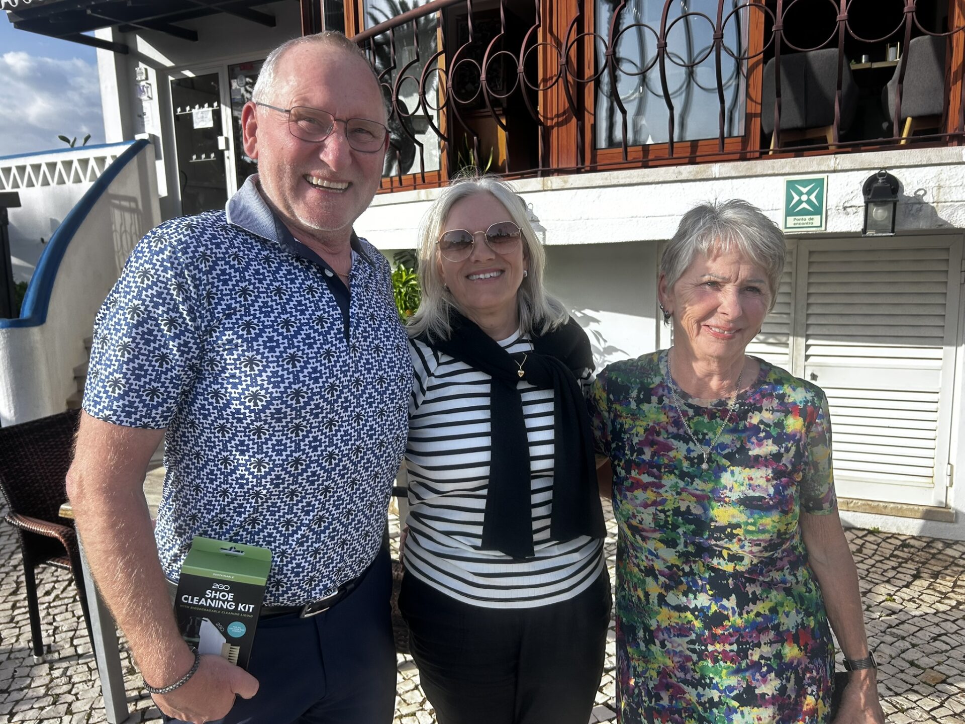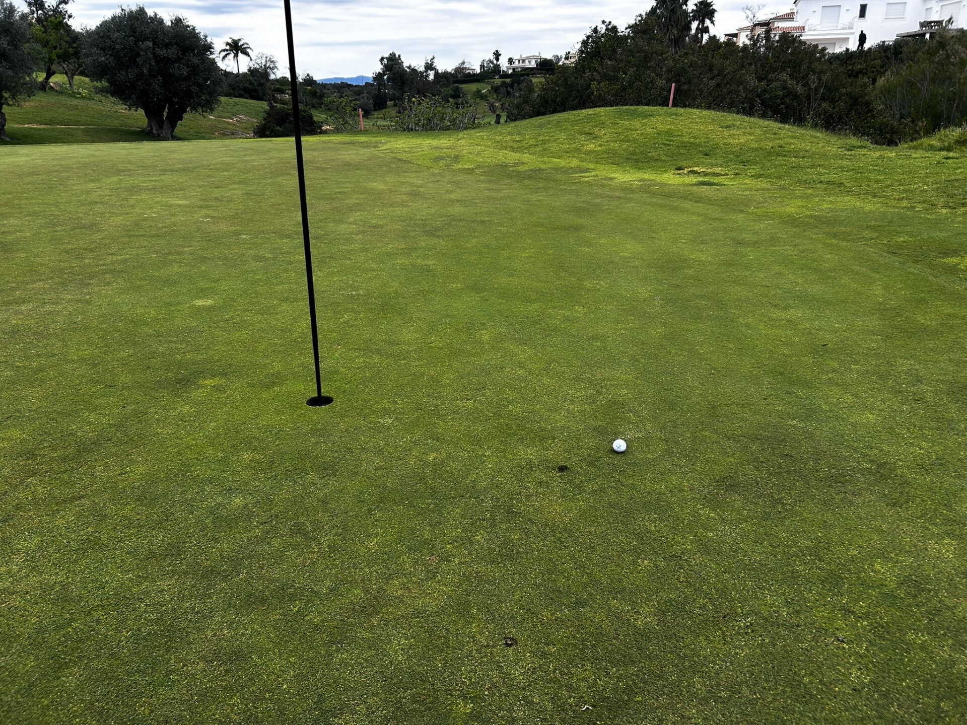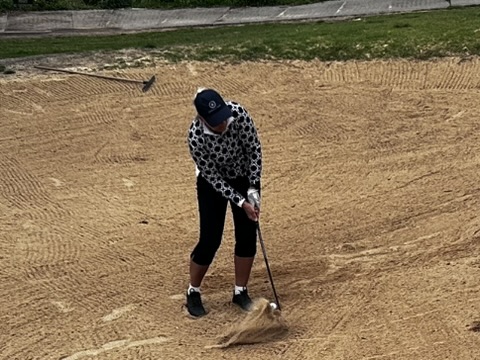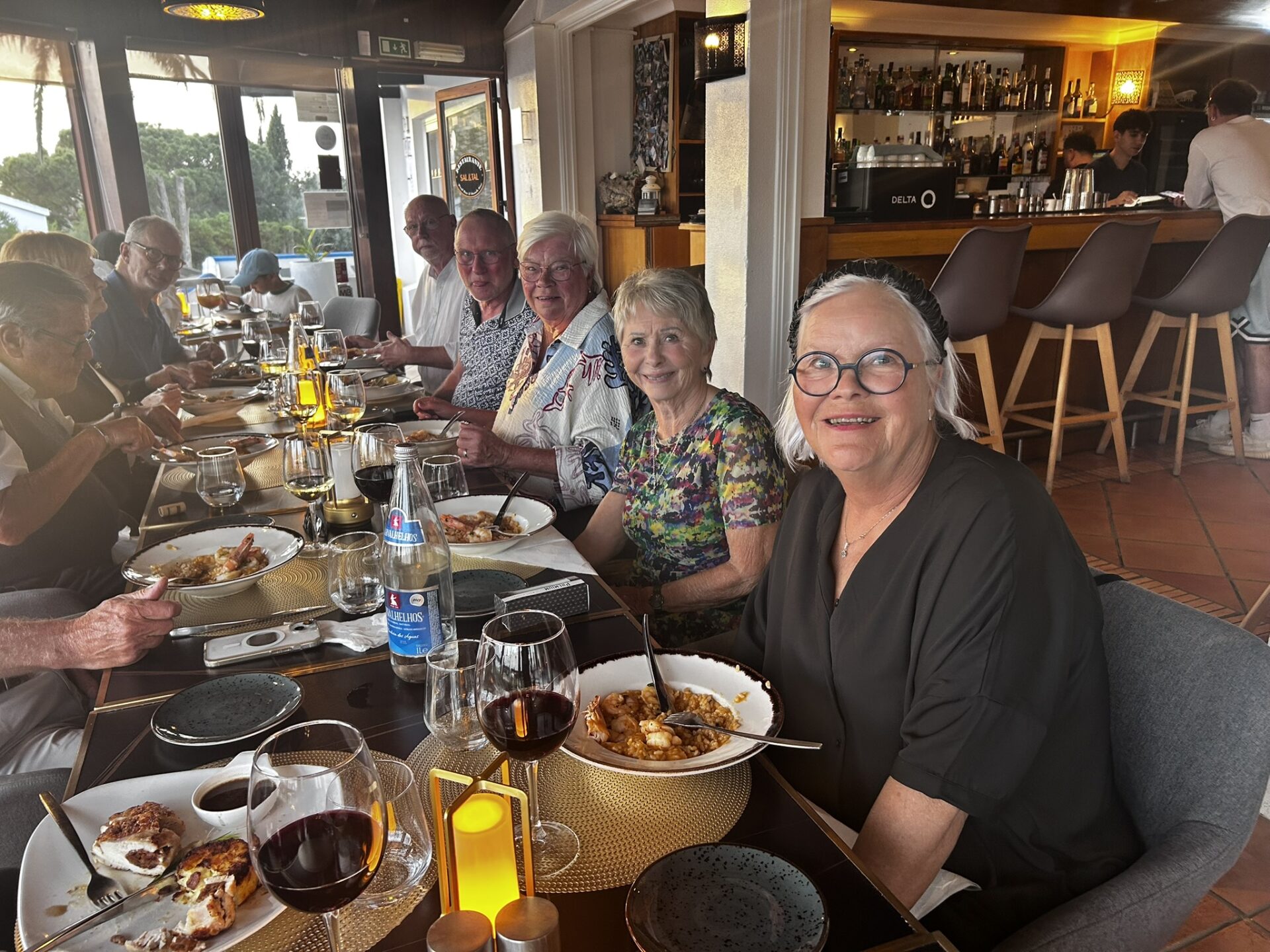 På Pinta spelade vi säsongens sista tävling. Här hål 1 med en uppstigande sol.Margaretha och Roger.Cai, Tina, Carina och Jörgen.Anders, Doris, Monica och Karl.Exemplariska bunkerslag från Cai.Och sedan Carina. Båda sandy par på tvåan.Vem kommer så här nära på 5:an?Jo Carina och enkel tap in för birdie.Dags för prisutdelning. I Bästbollen vinner Doris Närmast hål. Tina och Cai tvåa. Carina och Jörgen vinnare.Segraren i Singel och Närmast hål Carina flankeras av tvåan Jörgen och trean Tina.Carina dessutom återigen Veckans Spelare. Efterföljande gemensam middag intogs på ”vår” restaurang Sal&Tal.