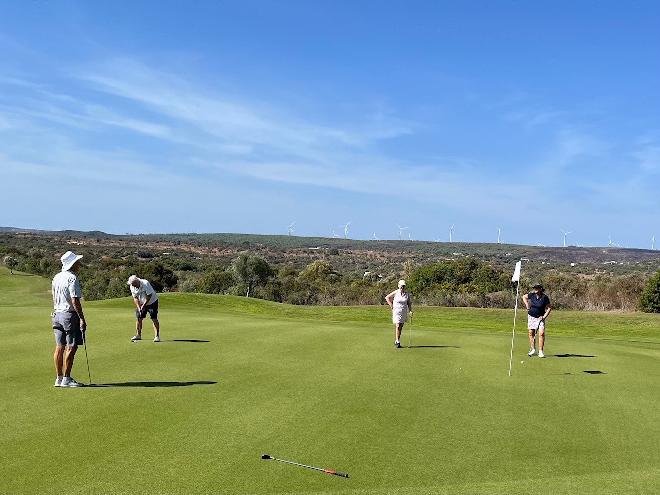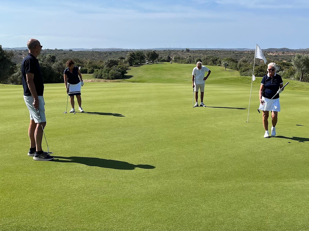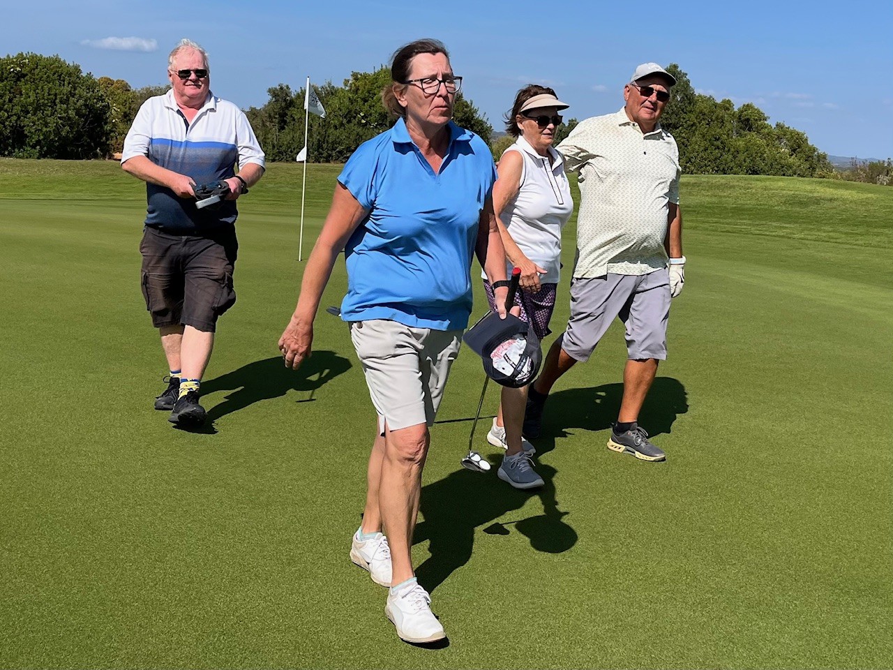 Vilket avslut för Margareta som drämde i en riktigt lång putt. Lars, Lillemor och Ingemar hoppas sätta sina också