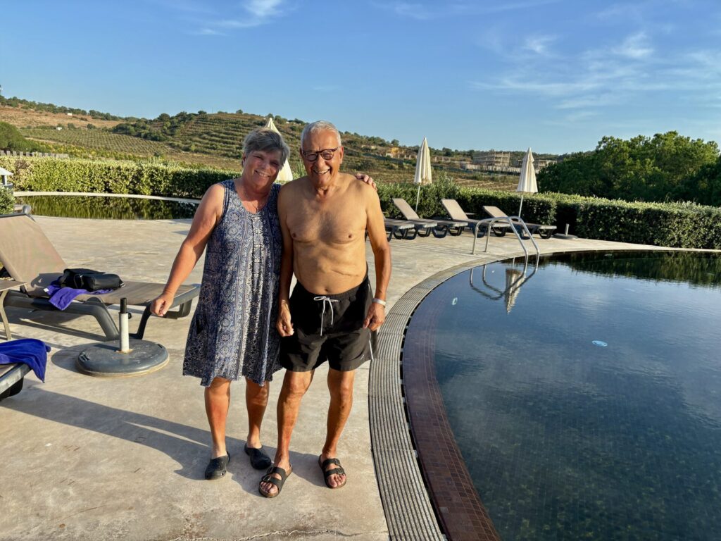 Kerstin och Murre trivs lika bra vid poolen som på golfbanan.