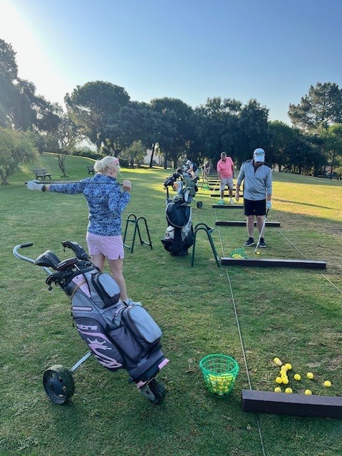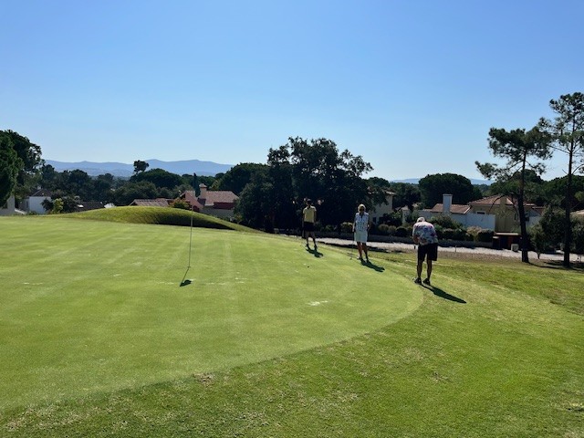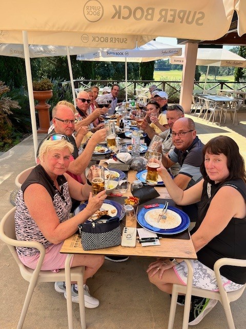 Hela gänget samlat innan Easton Classic Irish Rumble, laddade till för att äntliga få tävla lite, Janne, Clas, Inga-lill, Inger, Ove, Linnea, Monica, Kent, Kerstin, Dan, Stig, Maria, Ingela, Peter, Ing-Marie och Tommy. Må bästa lag vinna!!!Maria stretchar igång kroppen och Stig slår raka järnsjuor flera hundra meter. 😉Fint närspel av Monica och LinneaKerstin slår ett fint inspelVacker naturPuttning på 18Lunch på Quinta do Perus golfrestaurang, så välförtjänt efter 28 graders värme och fantastiskt bra spel.
