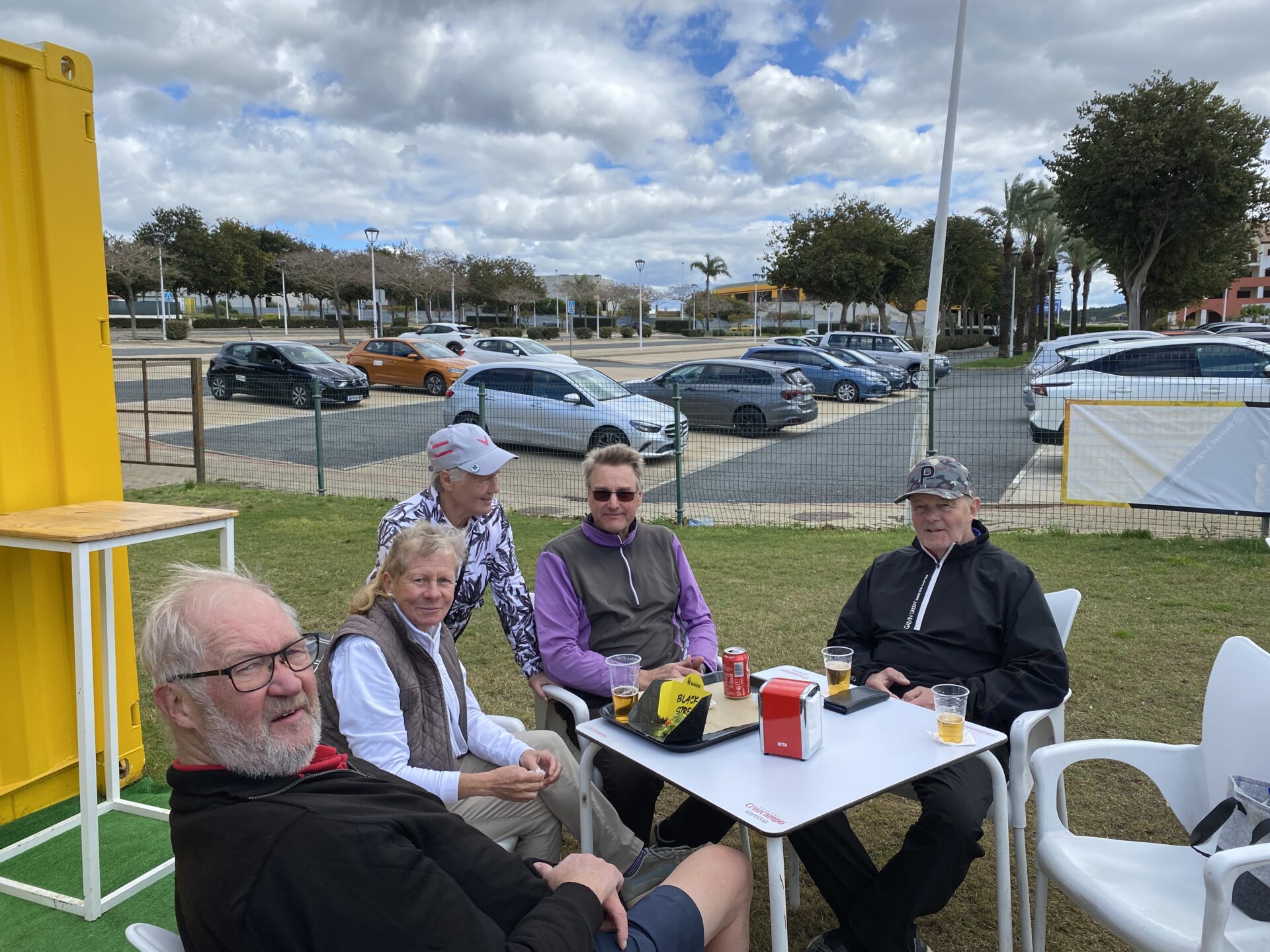 Vi som inte vann fick trösta oss med lite mat. Ni ser från vänster Stefan, Lena, Marita, Jonny Och Kjell