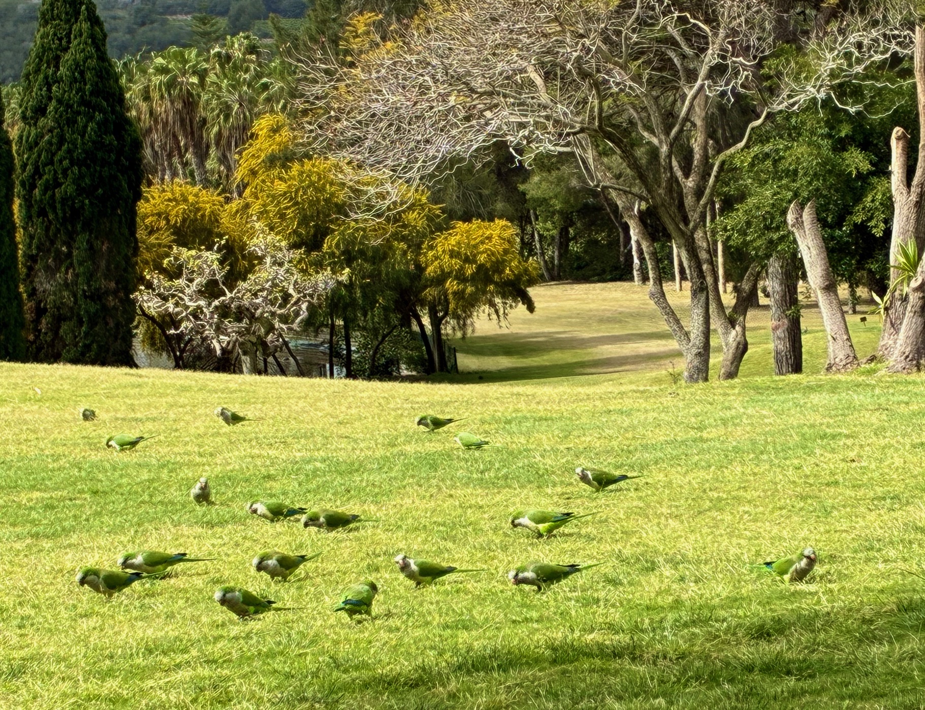 Nymfparakiterna håller till på 10:an och här var det dags för frukost.
