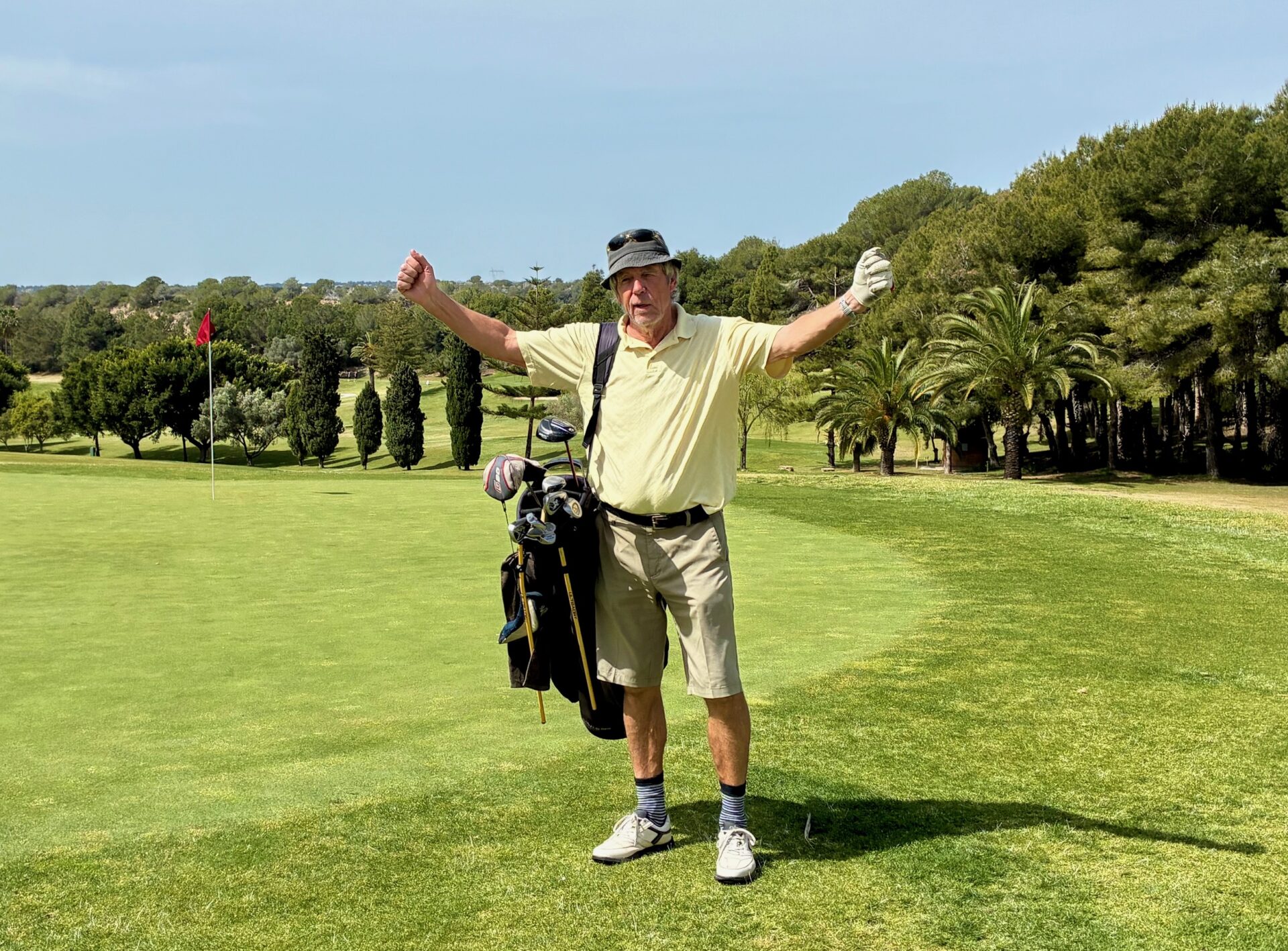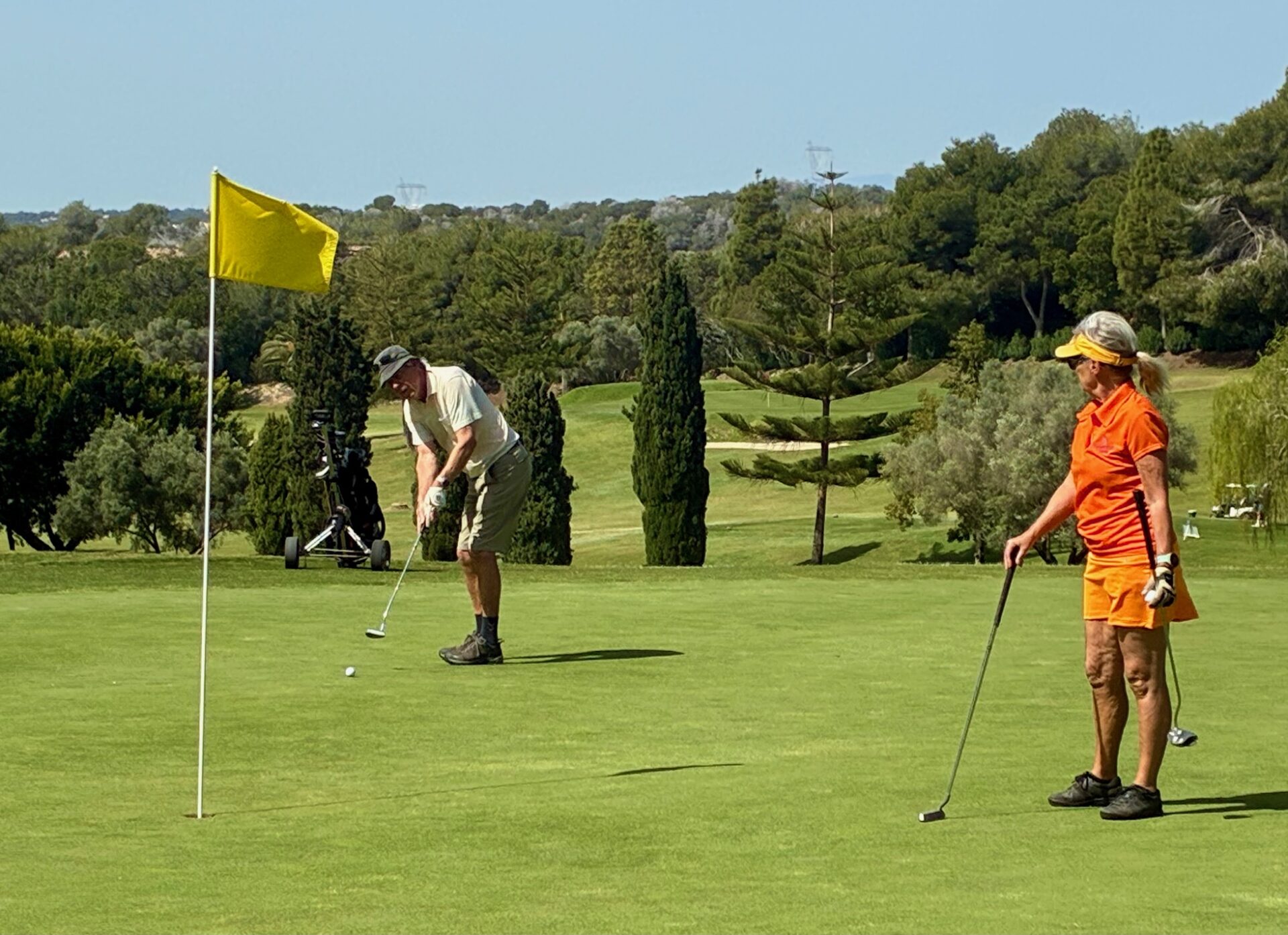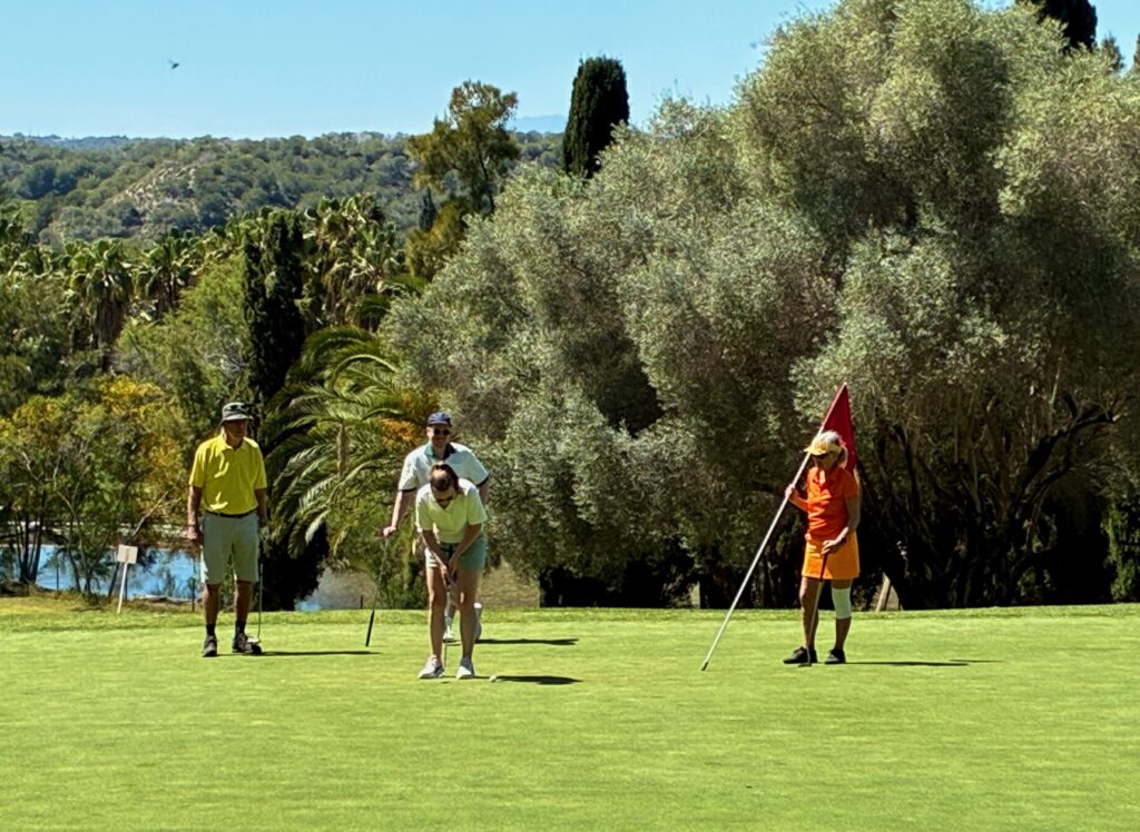 På 1:a tee möttes Pyret och Christer av Cicci och Alexander som redan varit på Campoamor några dagar och kunde visa runt på banan. ”Bogey är bra”, sa Christer och det blev veckans mantra. I bästa förhållanden gjordes inte bara bogeys, utan många par och även birdies plus flera puttar för eagle.
