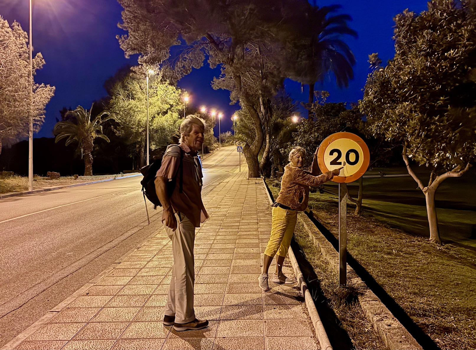Hastighetsbegränsning 2,0 km i timmen – vilken bra idé! tyckte Pyret. Vägen går ju trots allt genom golfbanan.