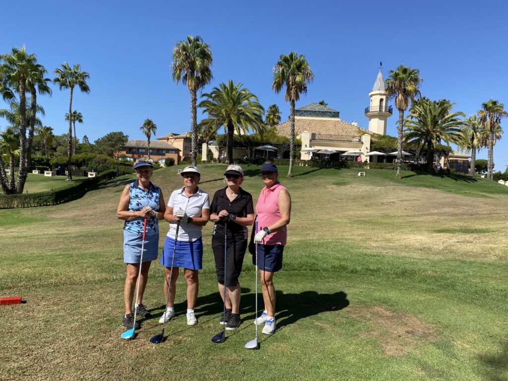 Här står flickorna på rad för att spela några extra hål. Från vänster ser ni Ulrika, Susanne, Lena och Eva