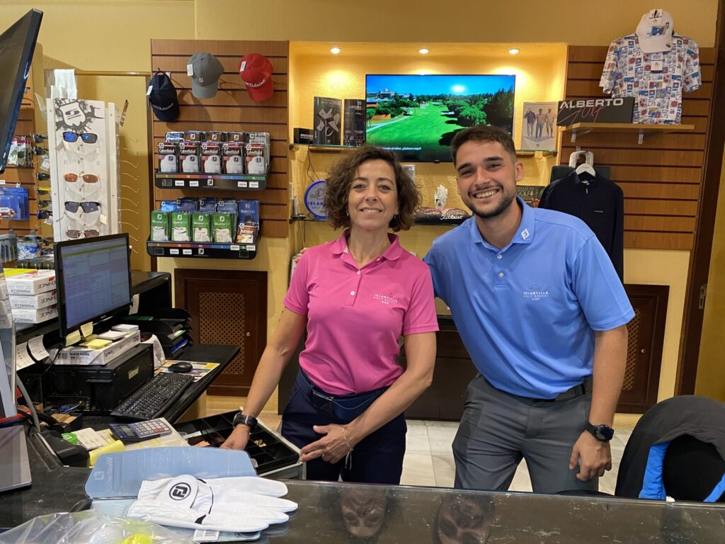 Här står delar av de duktiga och tålmodiga som sköter shopen, med teetime och hyr ut vagnar och Golfbilar. Ni ser Christina och Jorge