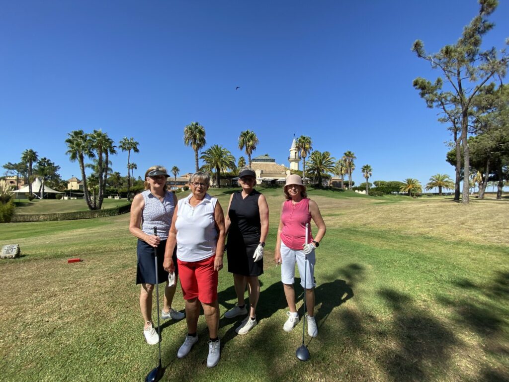 Vem sa att golf var svårt. När man från vänster ser dessa tjejer slå så verkar det enkelt.Från vänster ser ni Caroline,Rosmarie, Hejdu och Katarina.