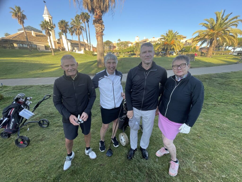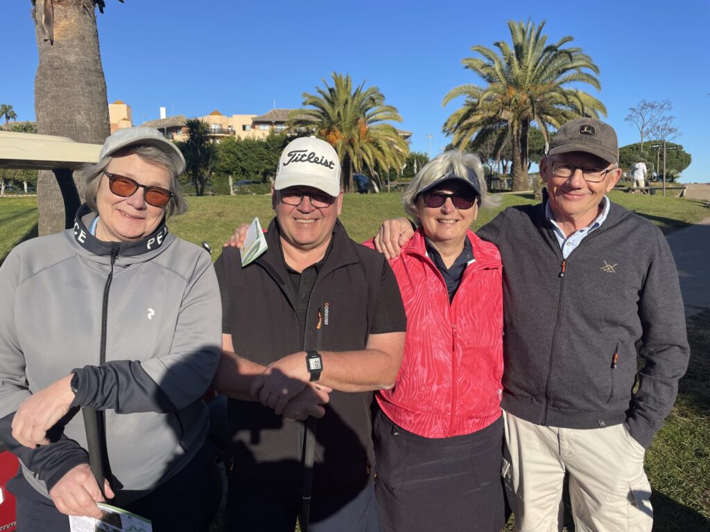Tommy Siv P-O och Birgitta. Tommy och P-O spelar 27 hål varje dag. Hatten av för denna bedrift.