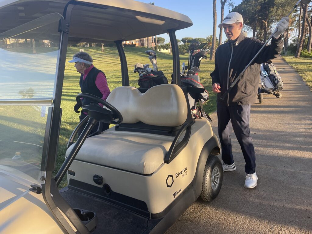 Sista tävlingen är på green. Roger och Rolf i förgrunden.
