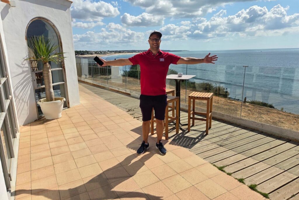Här sitter vi i restaurangdelen ett par trappor upp inför en sex-sju-åtta-rätters middag (tappade räkningen) och väntar på, i första hand, förfriskningar. Med lite finslipning kan det här bli riktigt bra.Har man en mästare på bilder och sociala medier på besök, uppdateras bildbanken på CV:t. Välkomna till Novo Sancti Petri!