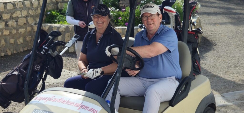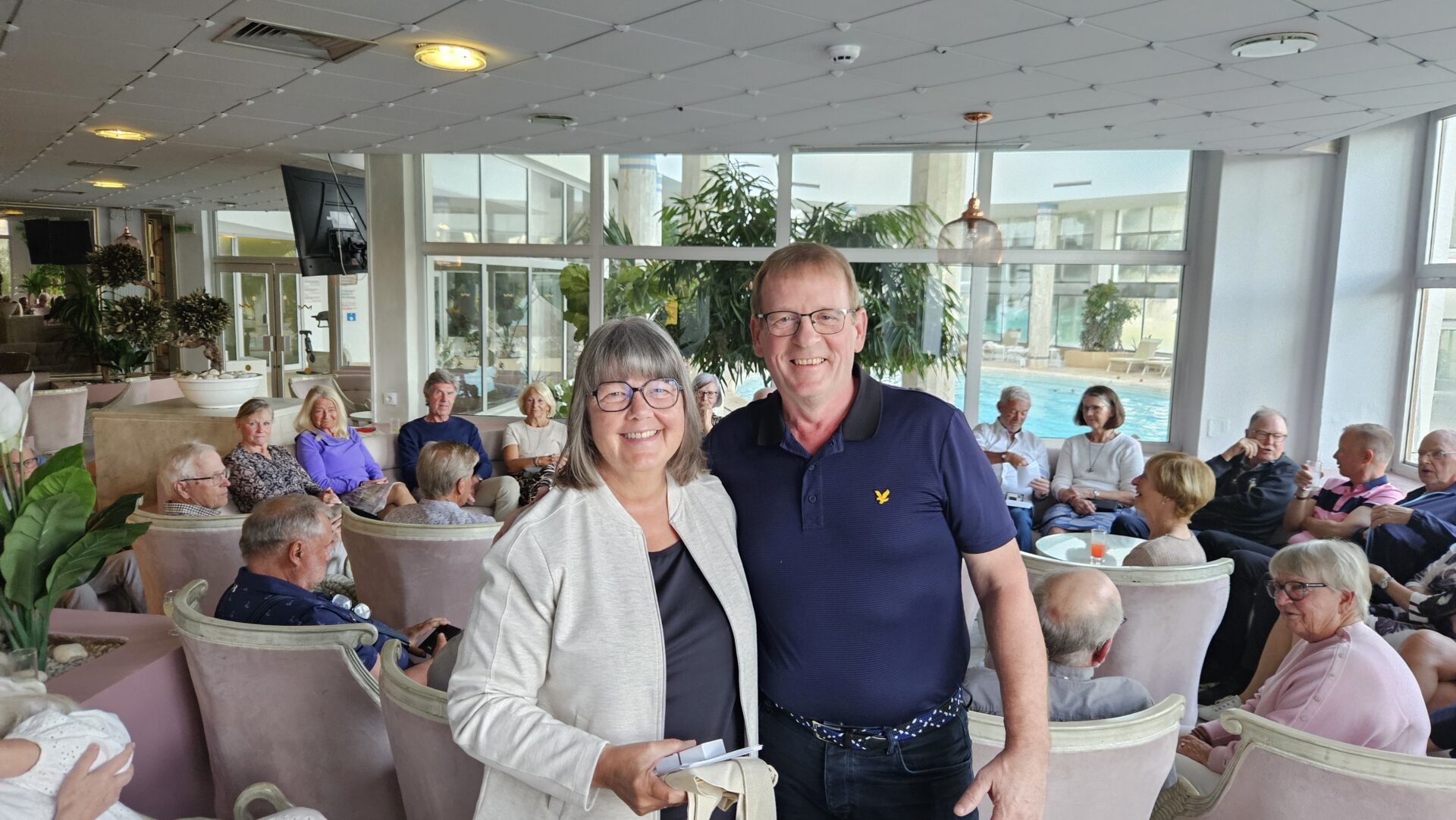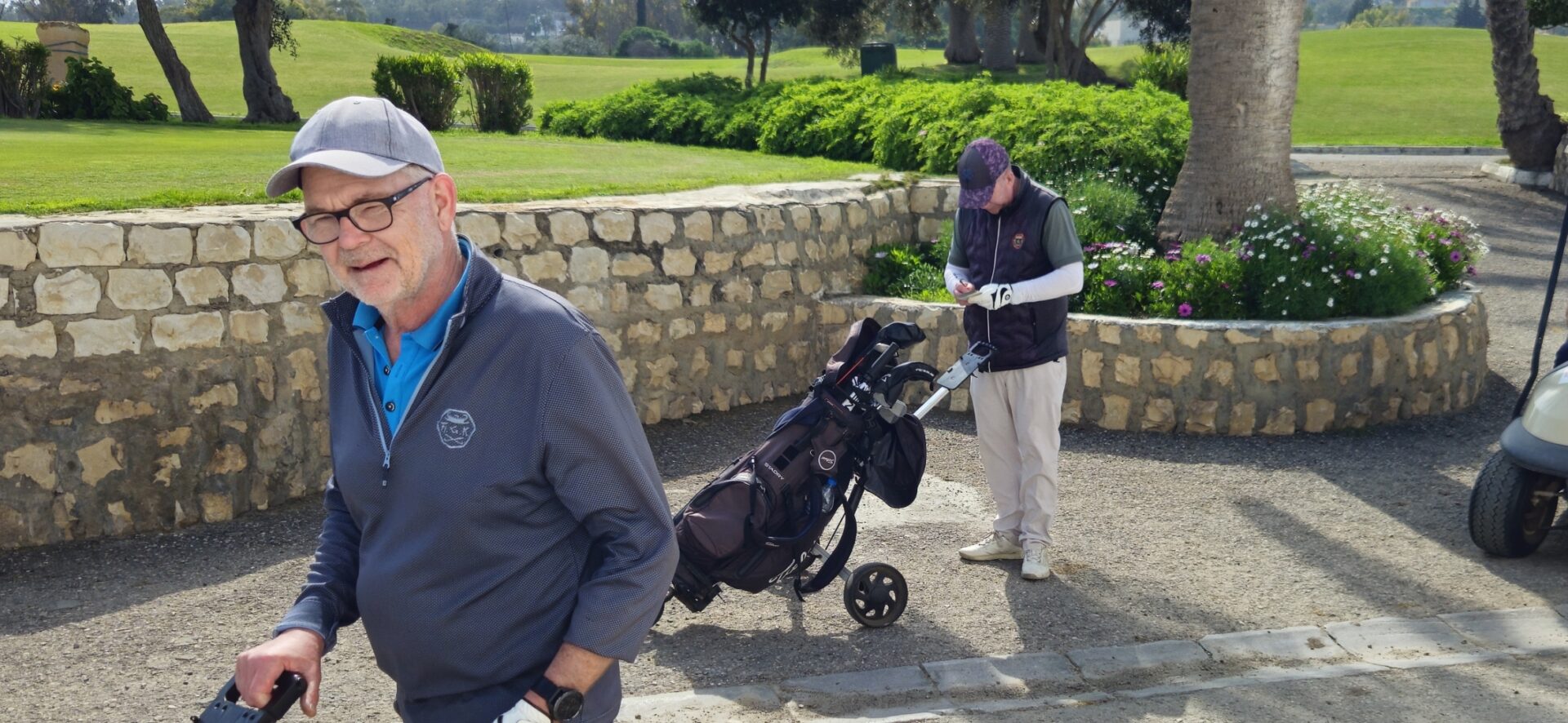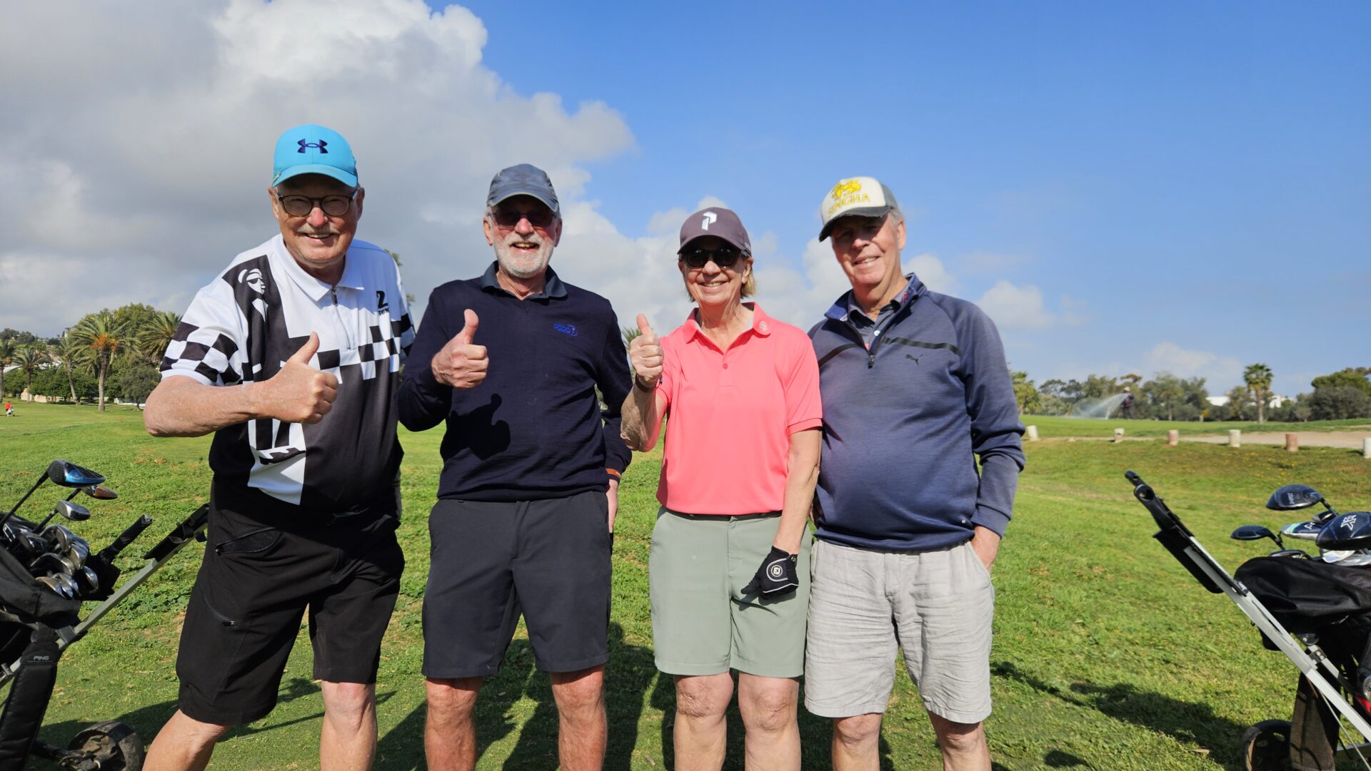 Anette o Rolf i buggyKjell-Ove, Hans och HannaAlltid lika glada Birgit! (även om man glömt telefonen…)Per är på språng medans Peter kollar scoren